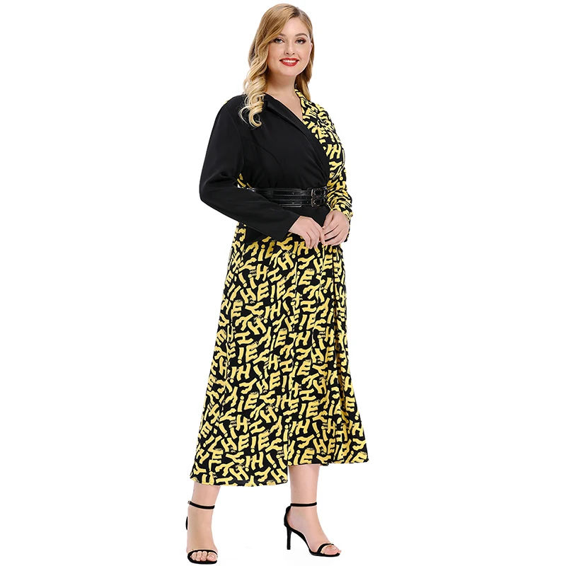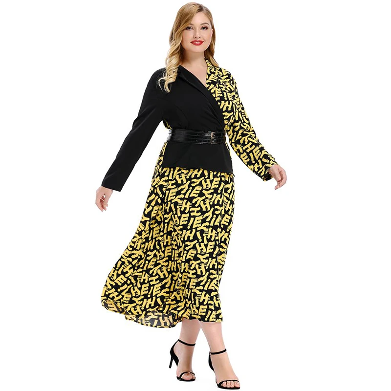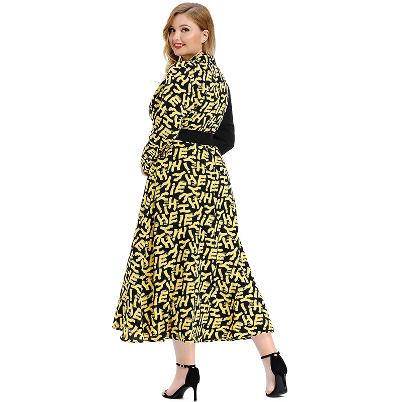 Product Name: Модное женское платье размера плюс, Повседневное платье с v образным вырезом, асимметричная строчка, длинный рукав, принт с буквами, высокая ...
