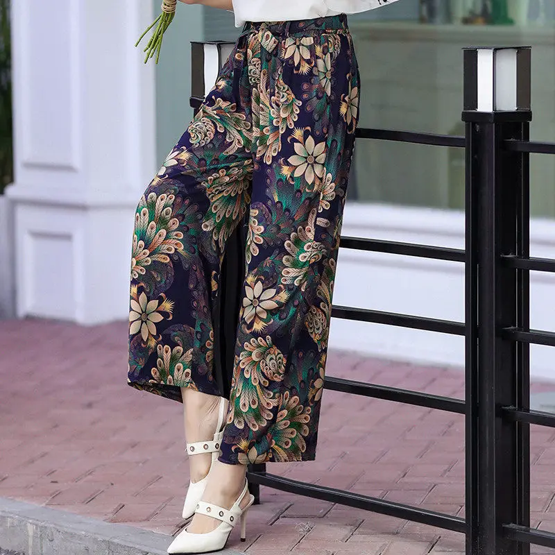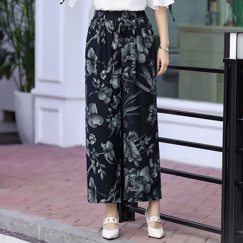 (0% Off) Купить Женские свободные брюки с широкими штанинами, большие размеры XL 5XL, женские высокой талией, летние прямые богемные бантом на ... Цена Дешево