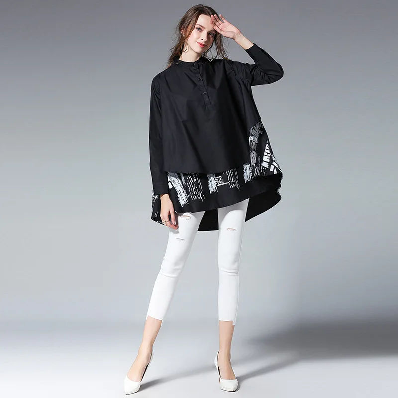 Product Name: [EAM] Новинка 2020, Осень зима, одноцветная блузка с принтом, длинный рукав, соединенная стойка, большой размер, свободная женская рубашка S05600L