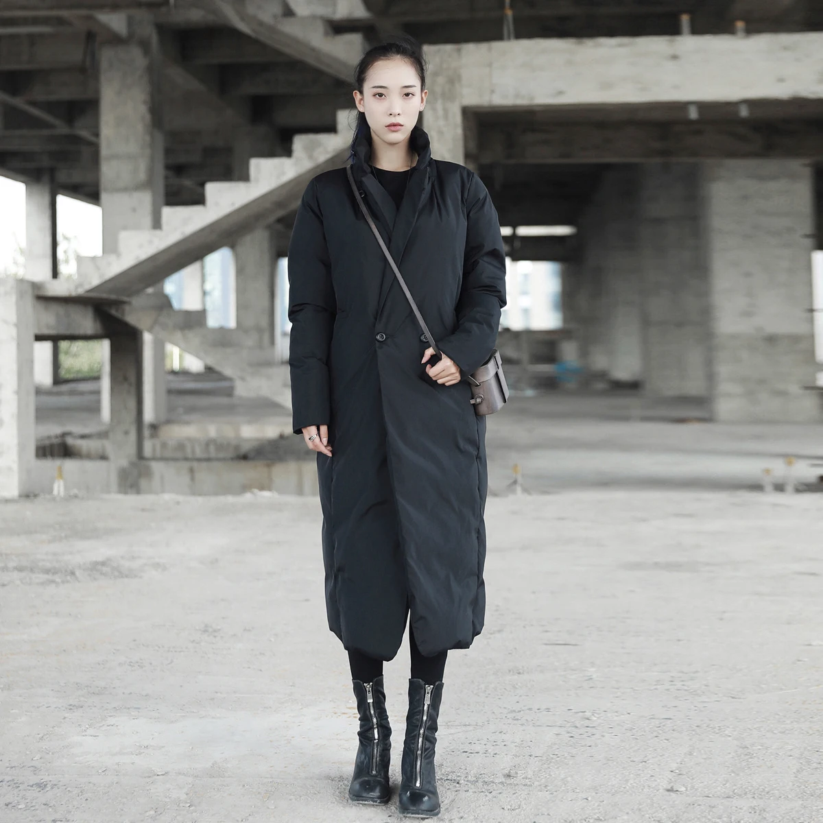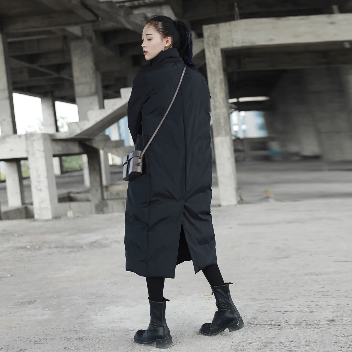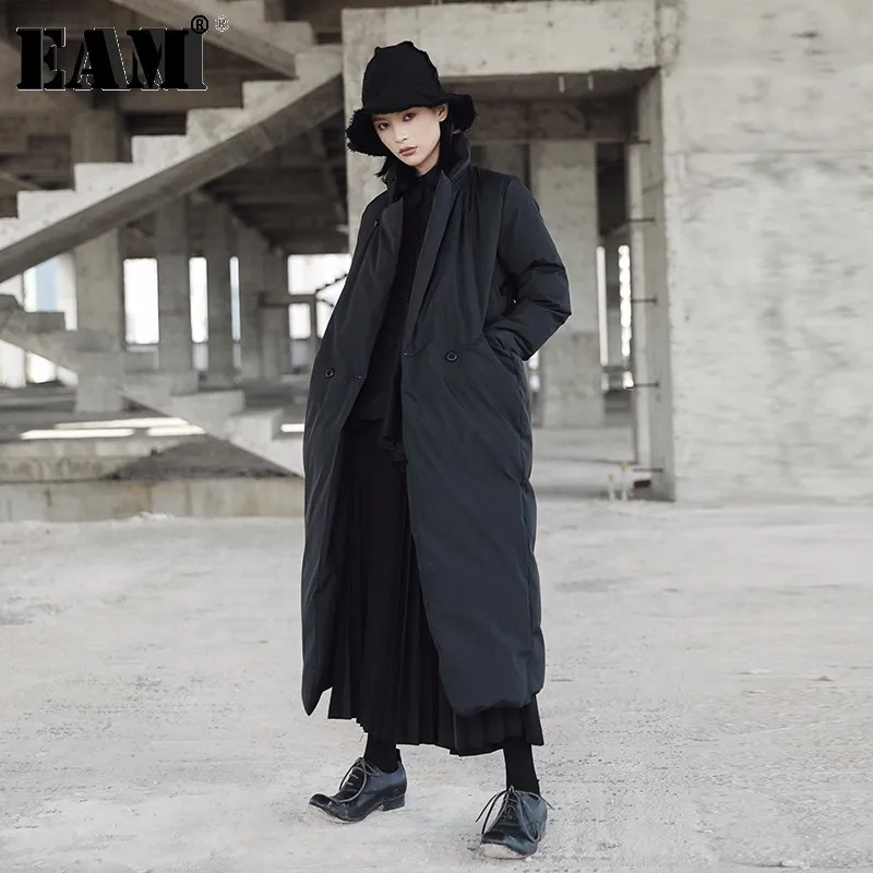 (33% Off) Купить [EAM] 2020 Новое весеннее однотонное черное пальто с воротником стойкой и длинным рукавом на хлопковой подкладке большого размера Женская мода ... Продажа Дешево