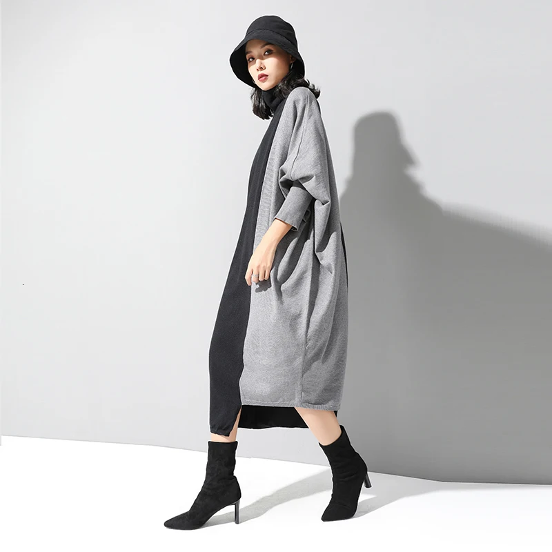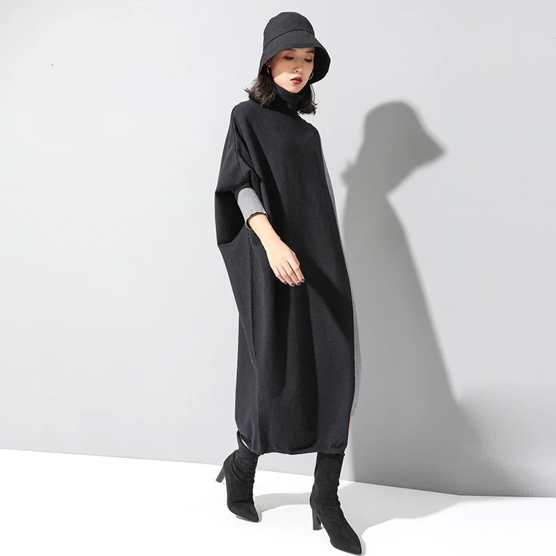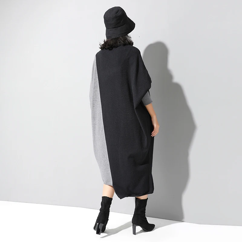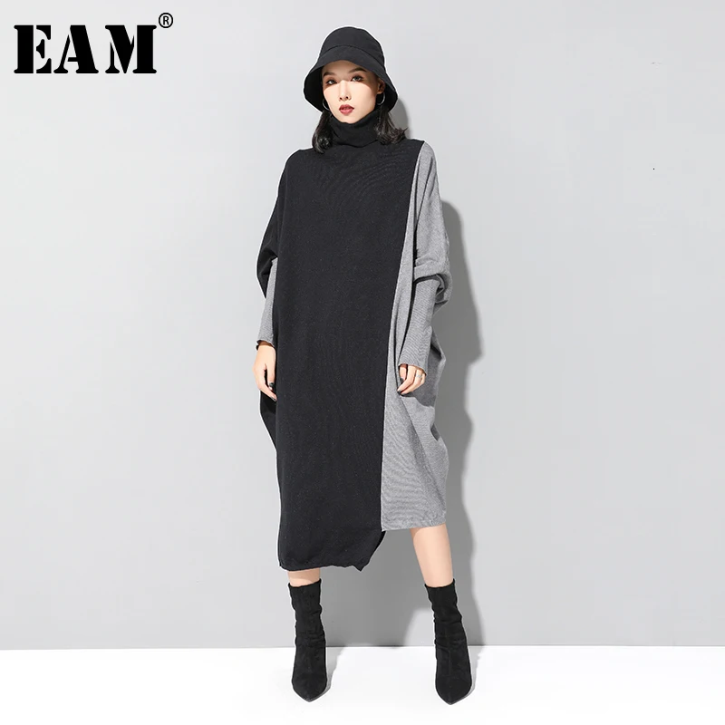 Special Offer [EAM] женское контрастное вязаное платье большого размера, новинка, длинный воротник, рукав летучая мышь, свободный крой, мода, весна осень 2020, ... Discount 33% Today!