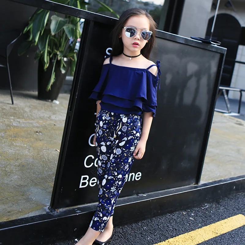 (37% Off) Купить Модный летний комплект одежды для девочек 2018, детские топы с открытыми плечами, штаны цветочным принтом, 2 предмета, детская одежда, одежда ... Продажа Дешево