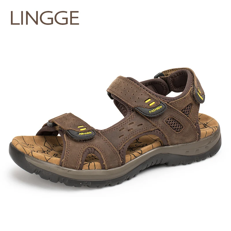 Special Offer LINGGE мужские сандалии из натуральной кожи; Летняя Пляжная Мужская обувь для отдыха; кожаные сандалии высокого качества; мужские сандалии; бо... Discount 50% Today!