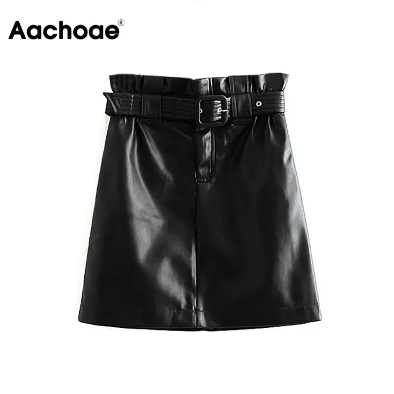(54% Off) Купить Женская модная юбка из искусственной кожи с поясом 2020, плиссированные уличные юбки высокой талией, шикарная трапециевидная мини юбка Faldas ... Цена Дешево