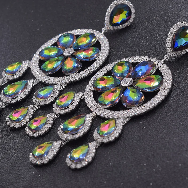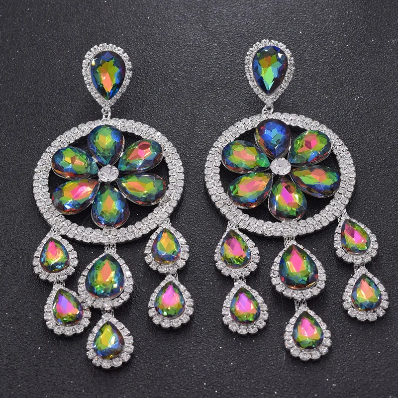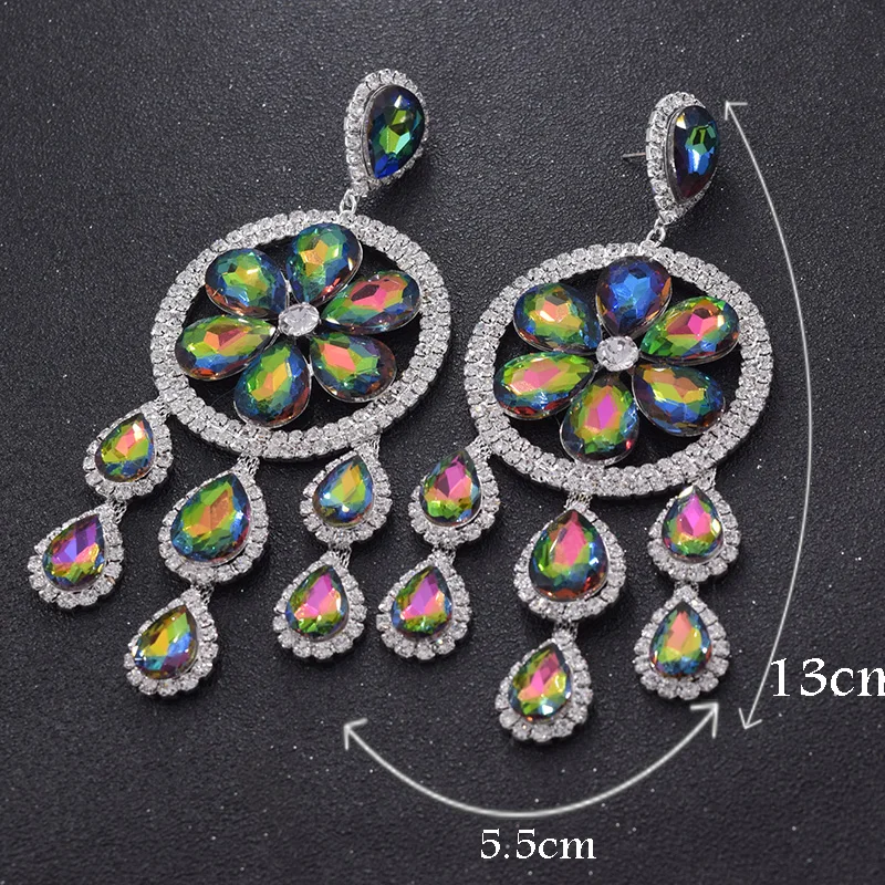 (0% Off) Купить Роскошные стеклянные стразы большого размера с кисточками, Висячие круглые женские ювелирные изделия кристаллами AB Цена Дешево