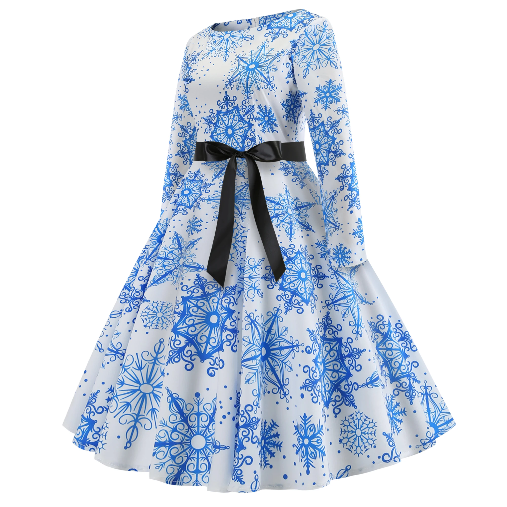 Special Offer Женское элегантное рождественское платье с длинным рукавом, винтажное праздничное платье с поясом, белое осенне зимнее облегающее платье с... Discount 0% Today!
