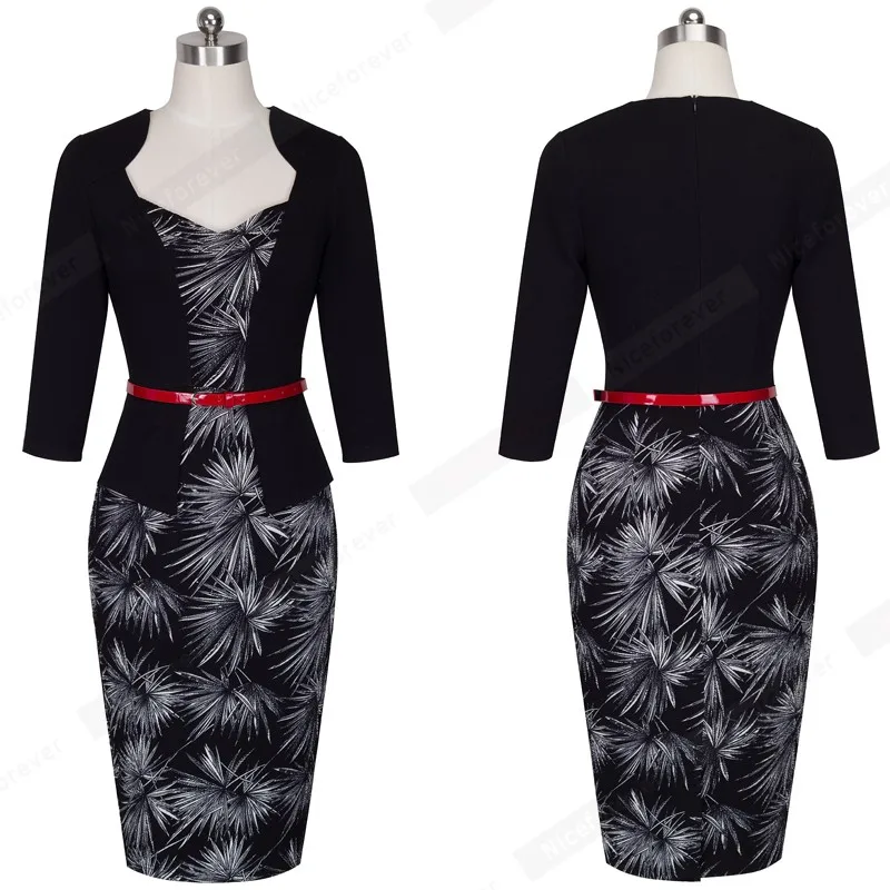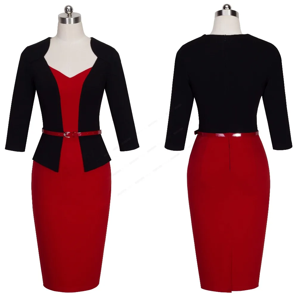 Special Offer Элегантное цельное лоскутное женское Деловое платье для офиса повседневная одежда для работы с поясом женское Формальное облегающее плать... Discount 10% Today!