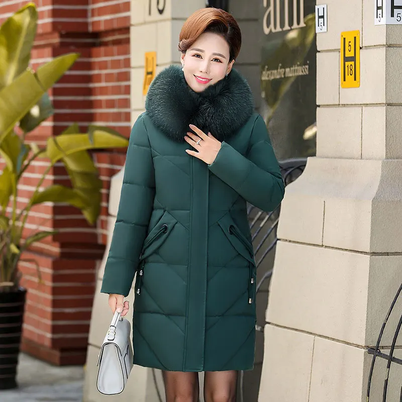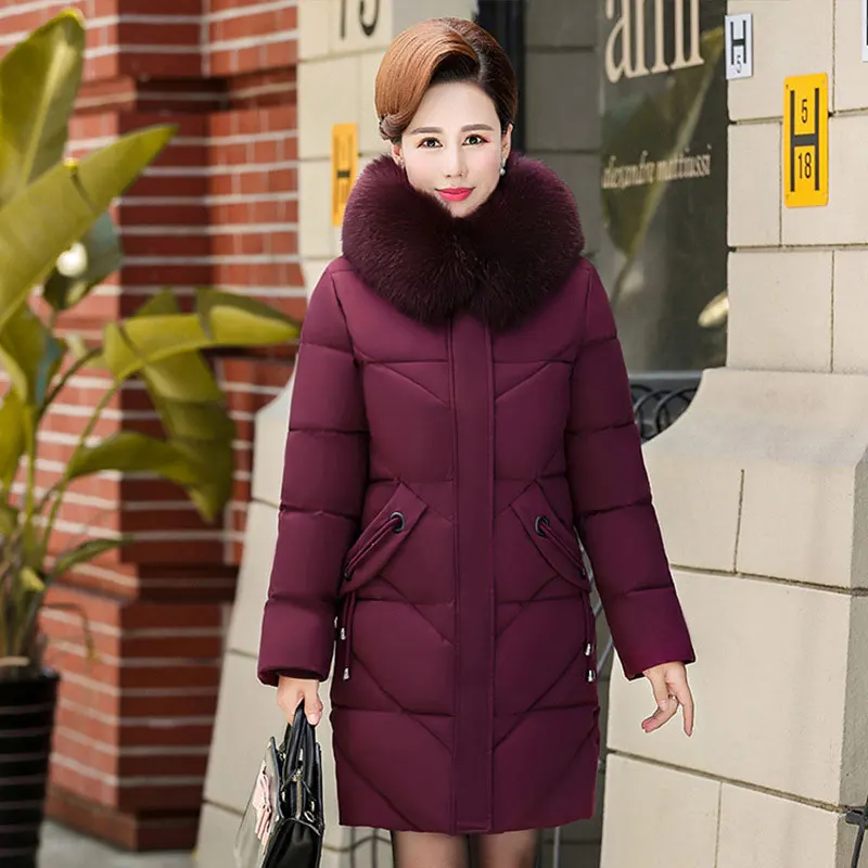 Product Name: Женский яркий меховой воротник, длинный капюшон, большой размер, зимний пуховик, Толстая теплая куртка с хлопковой подкладкой, ватные парки,...