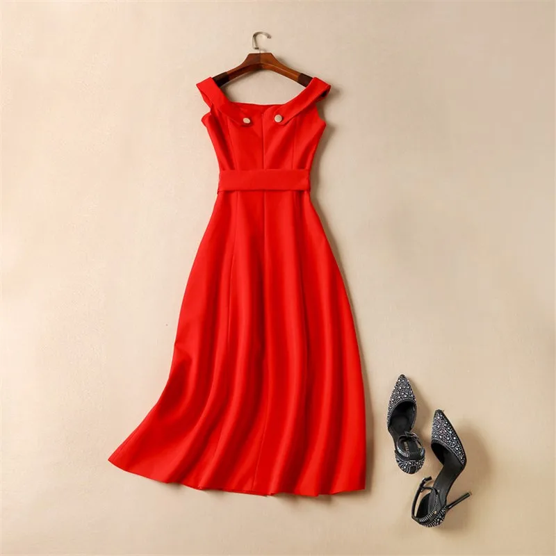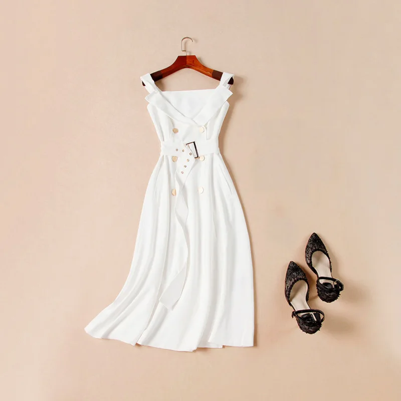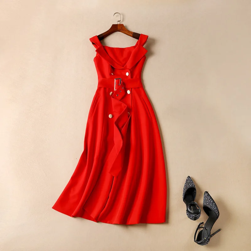 Product Name: Женское двубортное платье, элегантное платье средней длины с вырезом лодочкой и поясом, весна лето 2019