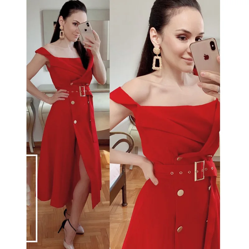 Special Offer Женское двубортное платье, элегантное платье средней длины с вырезом лодочкой и поясом, весна лето 2019 Discount 25% Today!
