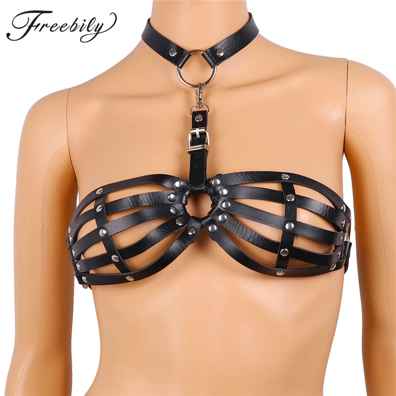 Special Offer Новинка, модный бюстгальтер из искусственной кожи, женский ремень готический, боди, повязка на шею, грудь, подвязки, сексуальное белье, одежд... Discount 30% Today!