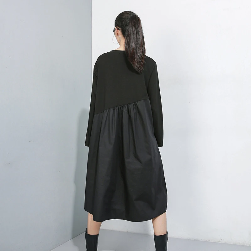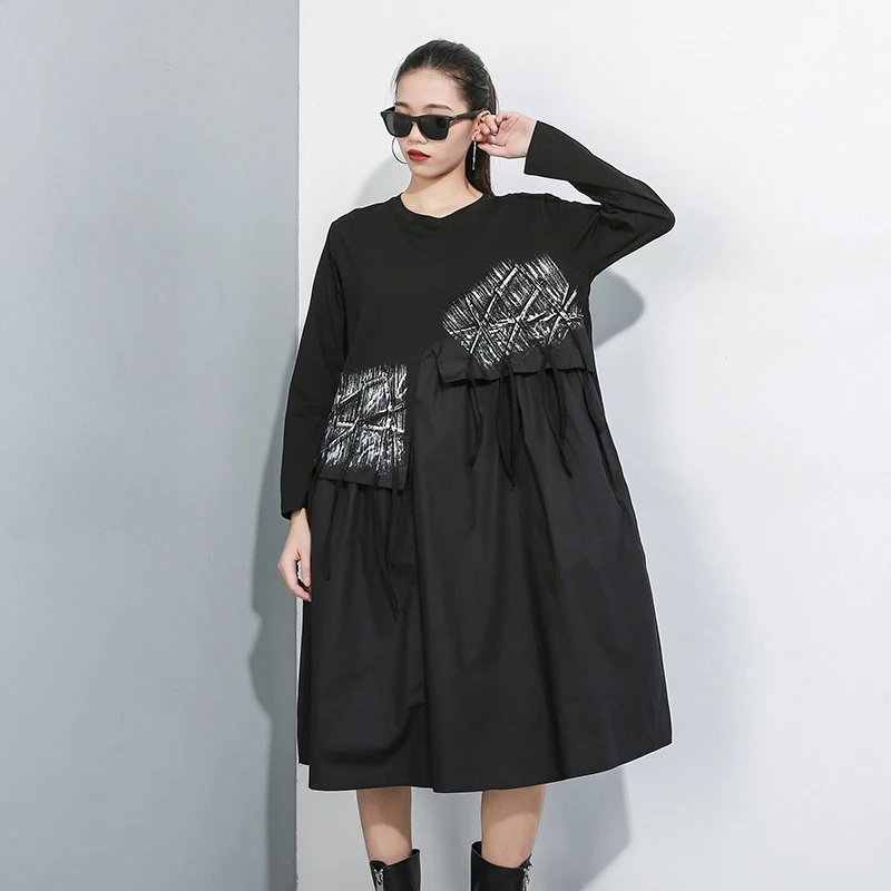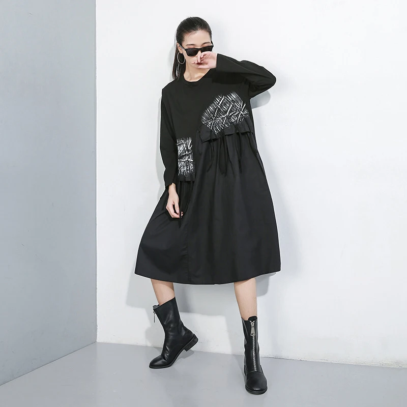 Product Name: [EAM] женское платье с принтом большого размера, платье с неровным подолом, новинка, круглый вырез, длинный рукав, свободный крой, мода, весна о...