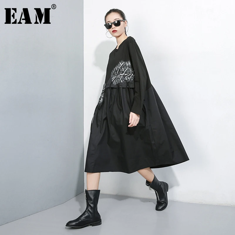 Special Offer [EAM] женское платье с принтом большого размера, платье с неровным подолом, новинка, круглый вырез, длинный рукав, свободный крой, мода, весна о... Discount 33% Today!