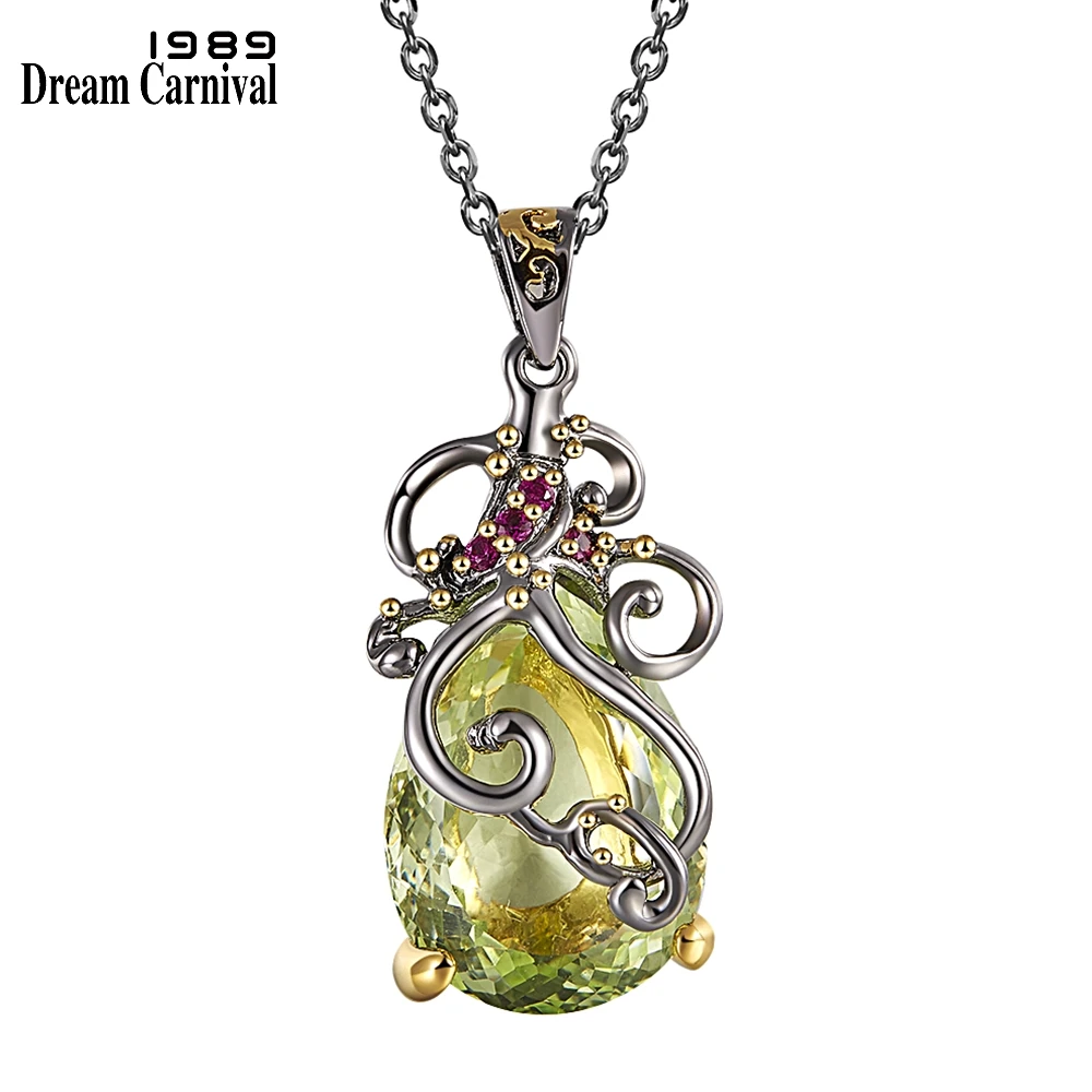 (38% Off) Купить DreamCarnival 1989, женская мода, длинная цепочка, подвеска, ожерелье, большая зеленая капля воды, CZ, свадебное ювелирное изделие, для девушек WP6560 Цена Дешево
