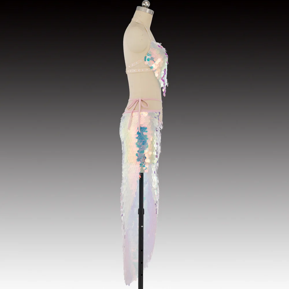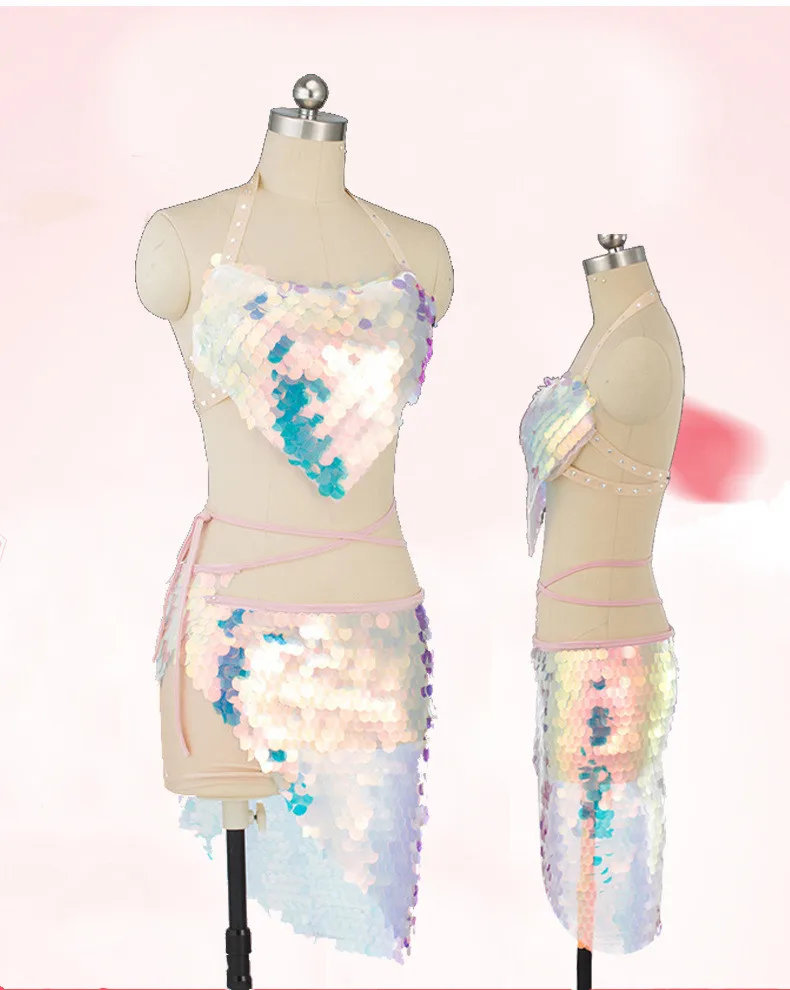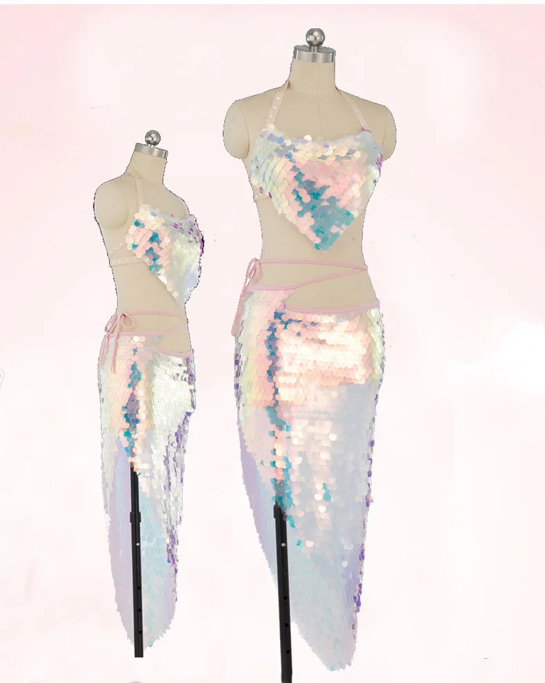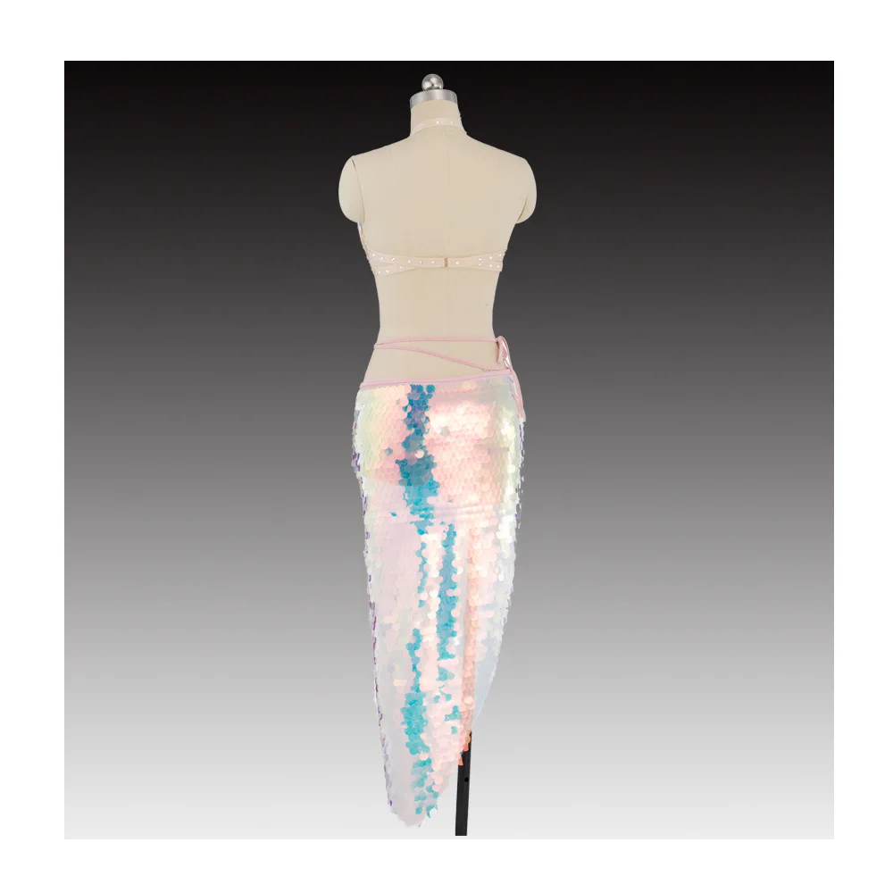 (40% Off) Купить Женский набор костюма для танца живота, Топ живота + шарф на бедрах, ремень с блестками, аксессуары рыбьей чешуи из 2 пре... Цена Дешево