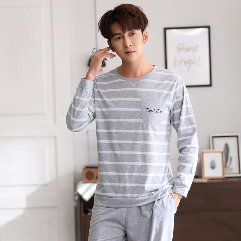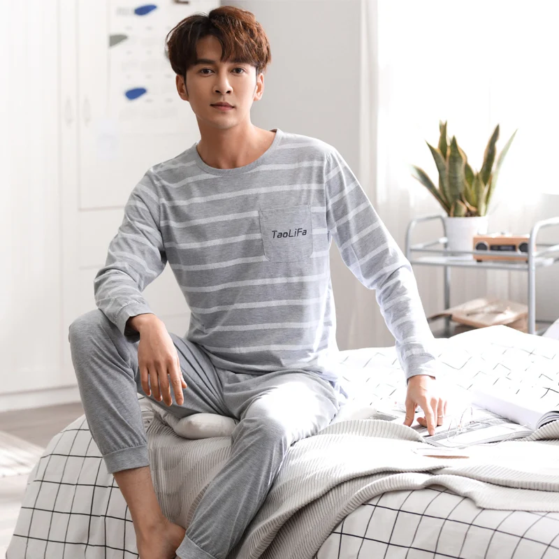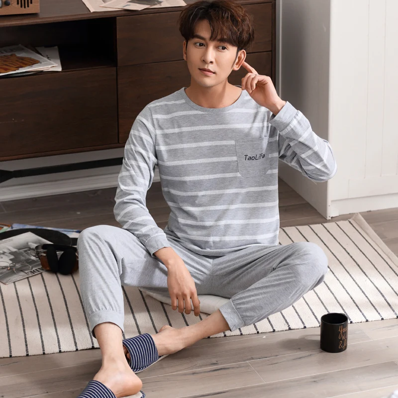 Special Offer Мужская пижама с длинным рукавом, Хлопковая пижама для сна, домашняя одежда, весна 2019 Discount 40% Today!