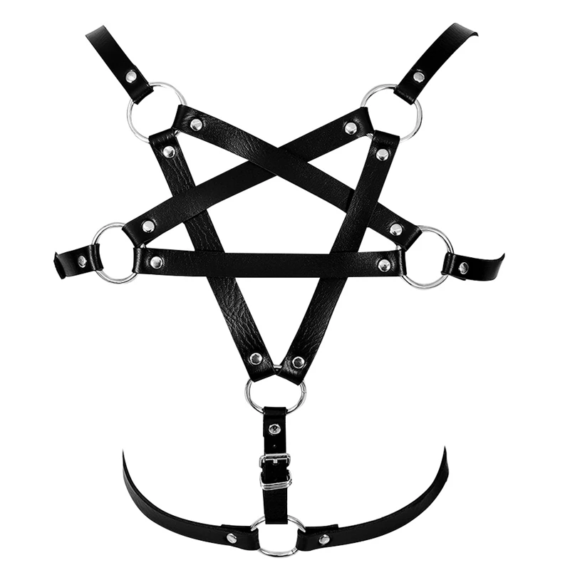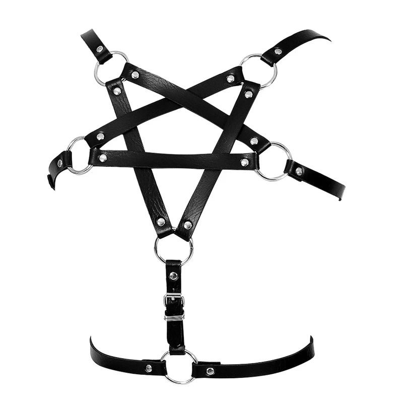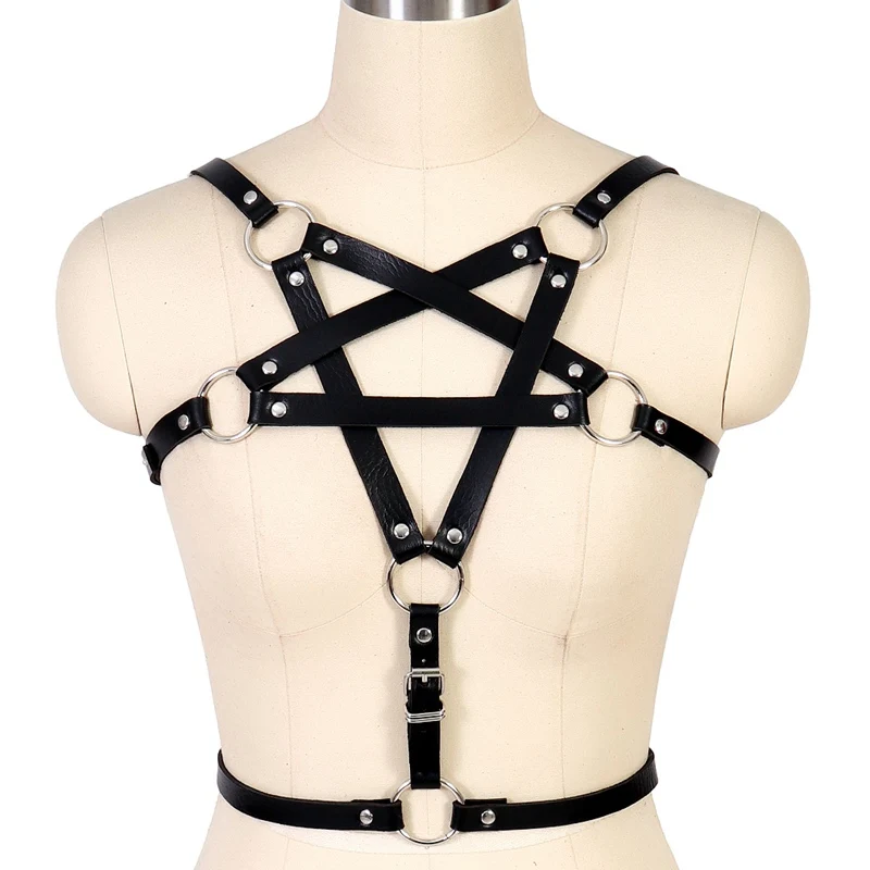 (41% Off) Купить Кожаный бюстгальтер с пентаграммой, пояс в клетку, нижнее белье, Фетиш для женщин, боди, бондаж, сексуальные черные топы, панк, готический тан... Продажа Дешево