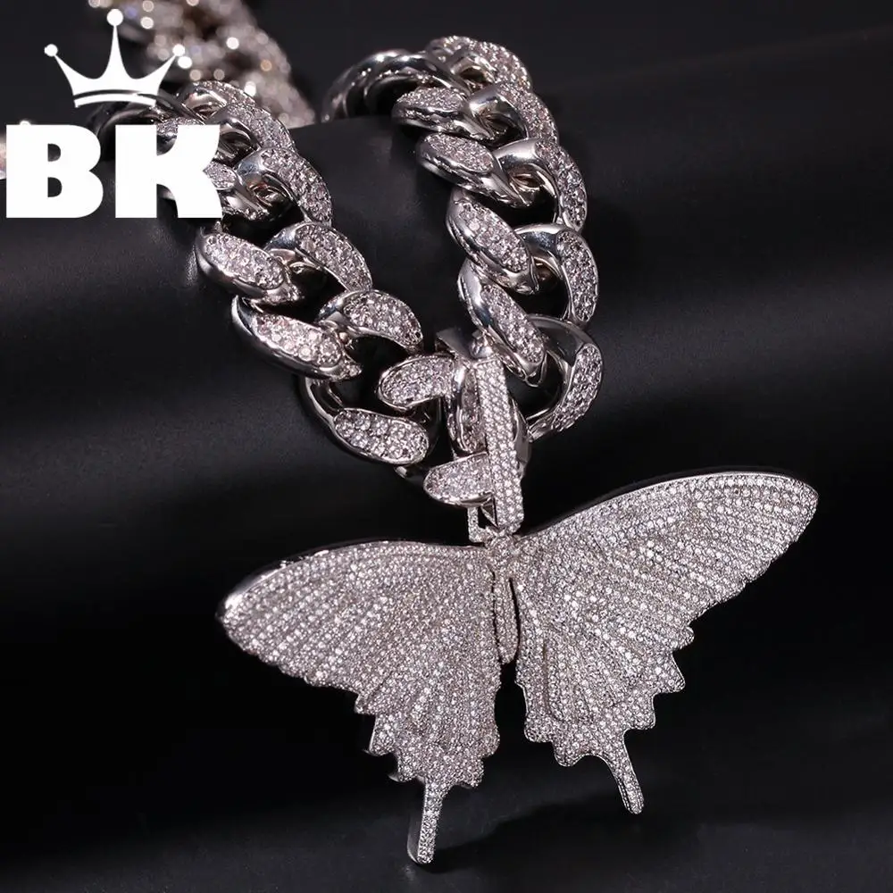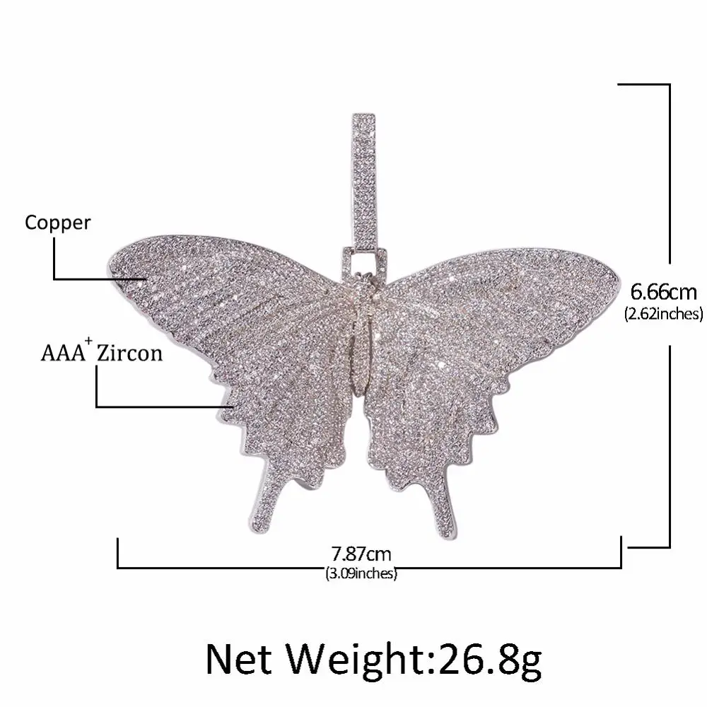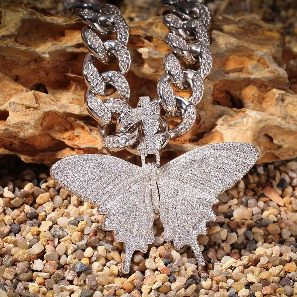 Product Name: Ожерелье в стиле хип хоп с подвеской в виде бабочки, сочетающееся с именем слов и большой застежкой, полностью покрытое кубическим цирконие...