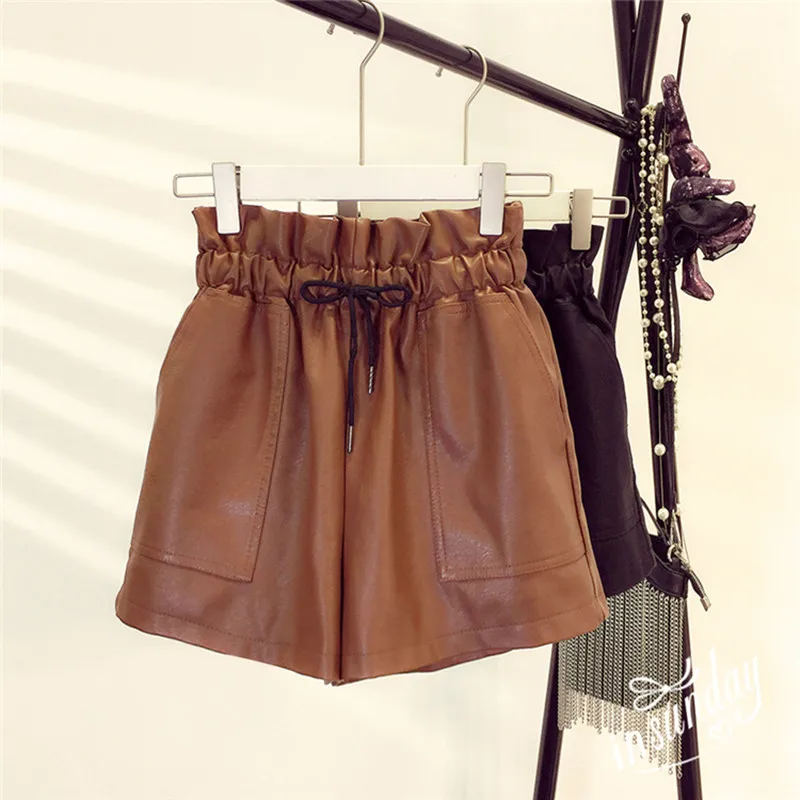 Product Name: Новинка осени 2020, женские сексуальные кожаные шорты в Корейском стиле, свободные широкие шорты с высокой талией, эластичный пояс, бесплатна...