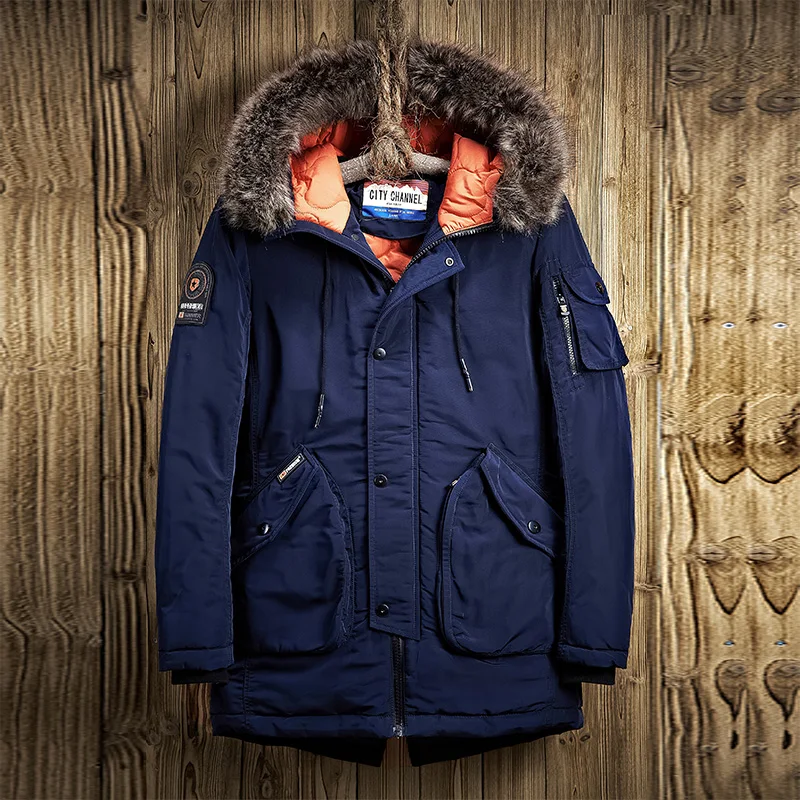 Product Name: AIOPESON зимняя мужская куртка, Повседневная парка, однотонная, с большим карманом, высокое качество, зимняя мужская куртка, меховая толстовка, ...