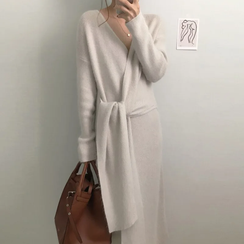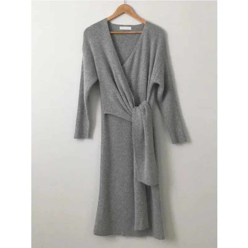 Product Name: YAMDI высококачественное платье свитер с высокой талией, женское платье с поясом, элегантное Бандажное шикарное подиумное модное женское пла...