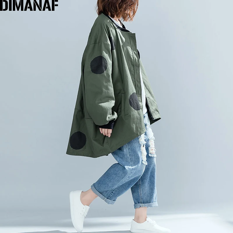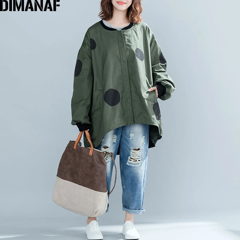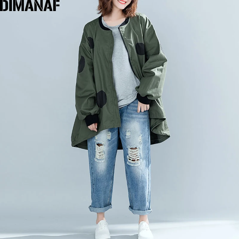 Special Offer Женский кардиган в горошек DIMANAF, зеленая Свободная куртка на молнии, большие размеры, Осень зима 2019 Discount 53% Today!