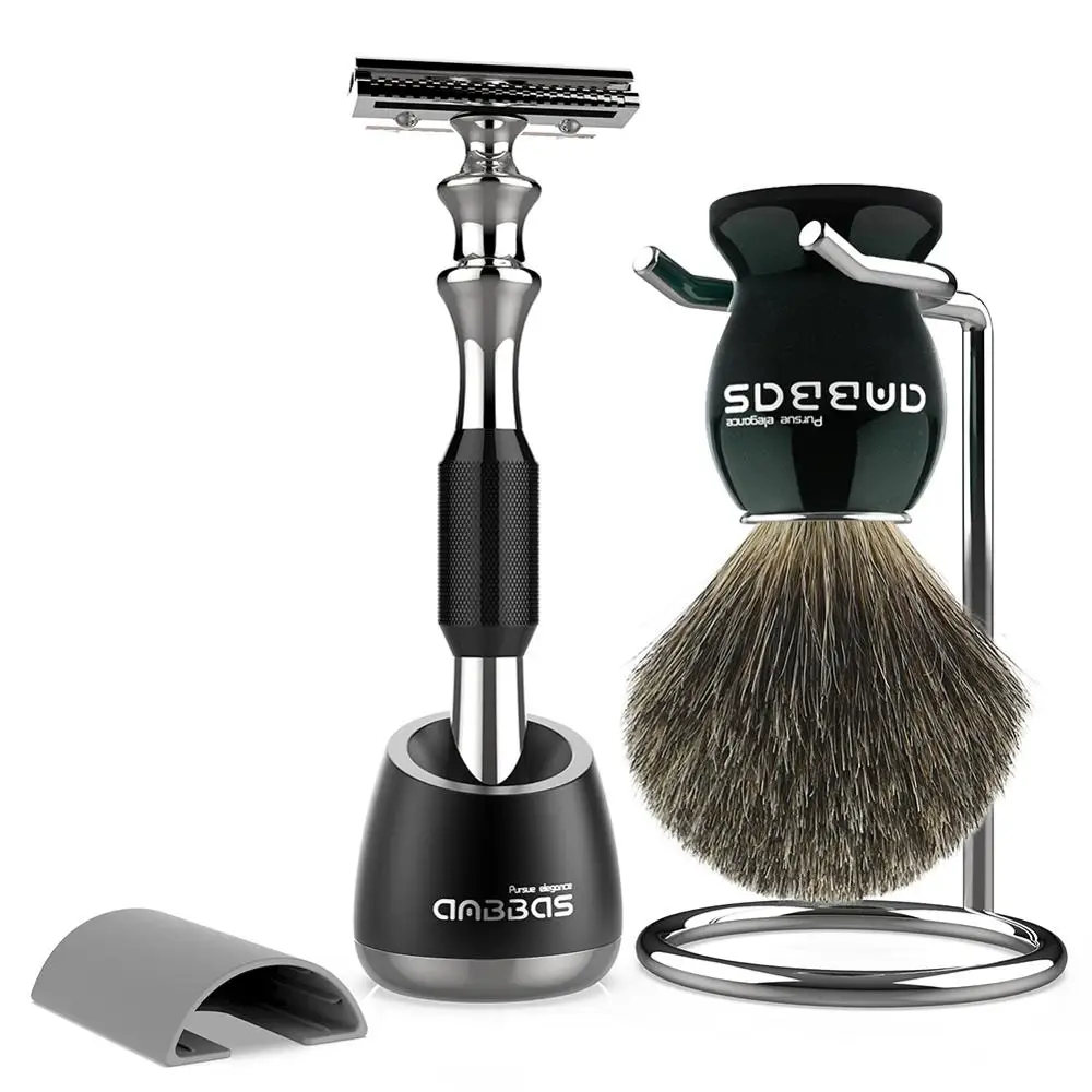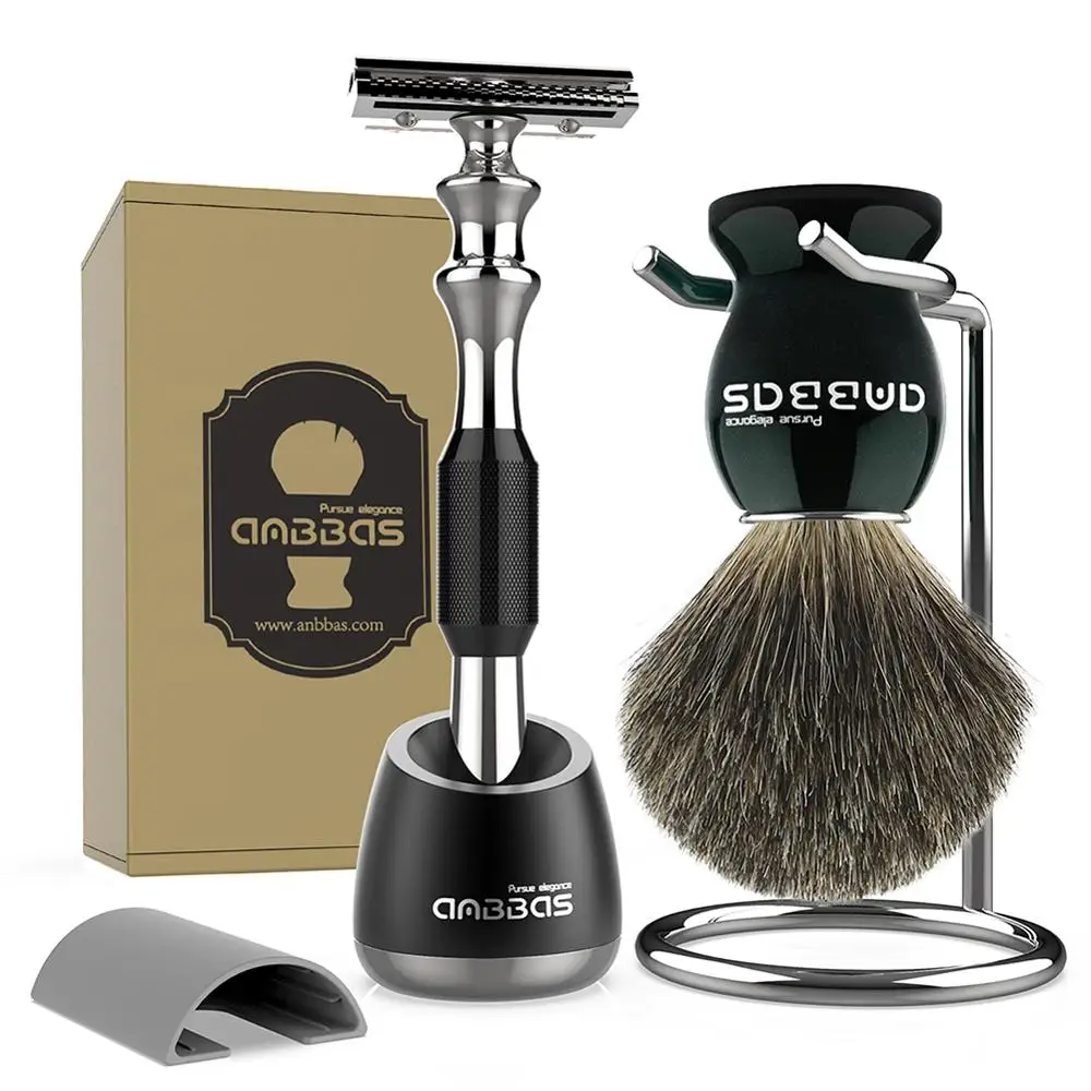 (15% Off) Купить Anbbas набор кистей для бритья и бритв, Лучший Барсук волос с черной деревянной ручкой Парикмахерская Безопасная бритва держатель подста... Цена Дешево