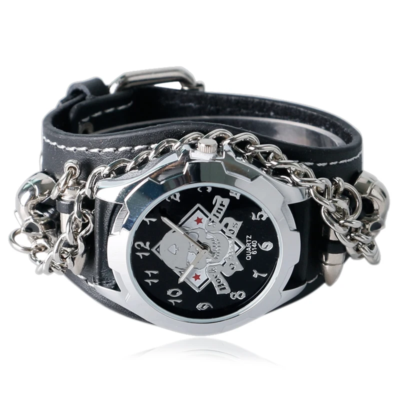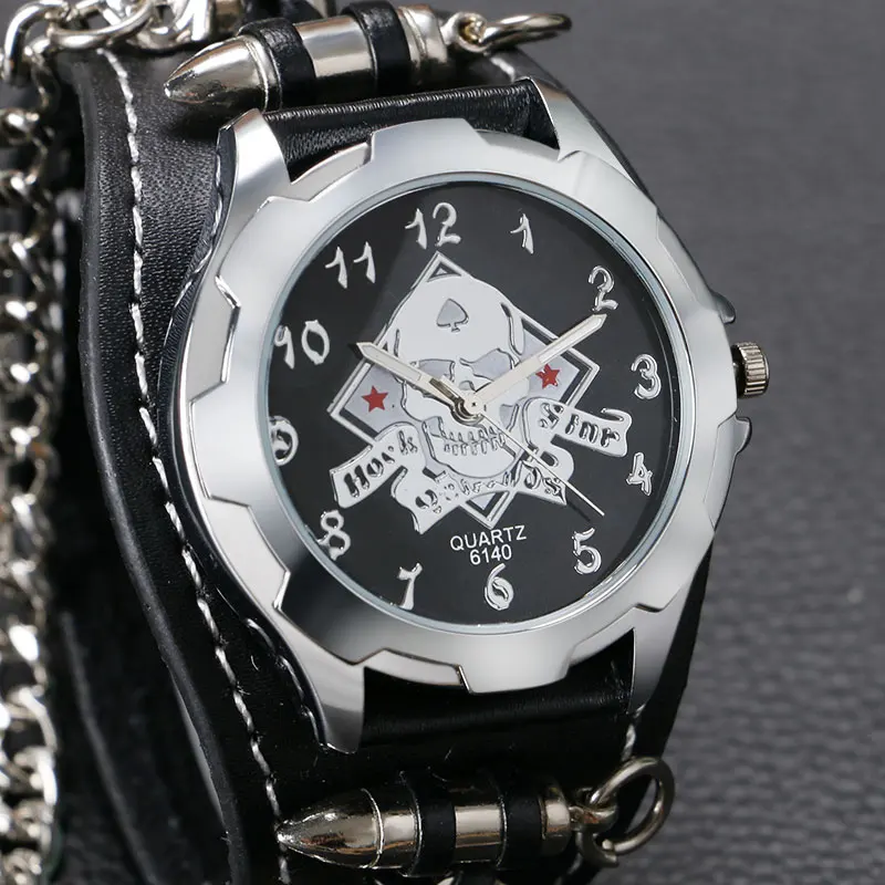 (16% Off) Купить часы мужские наручные Творческий Череп пуля Спорт рок готические Стиль кварцевые аксессуары панк Мода Для мужчин прохладный ... Цена Дешево