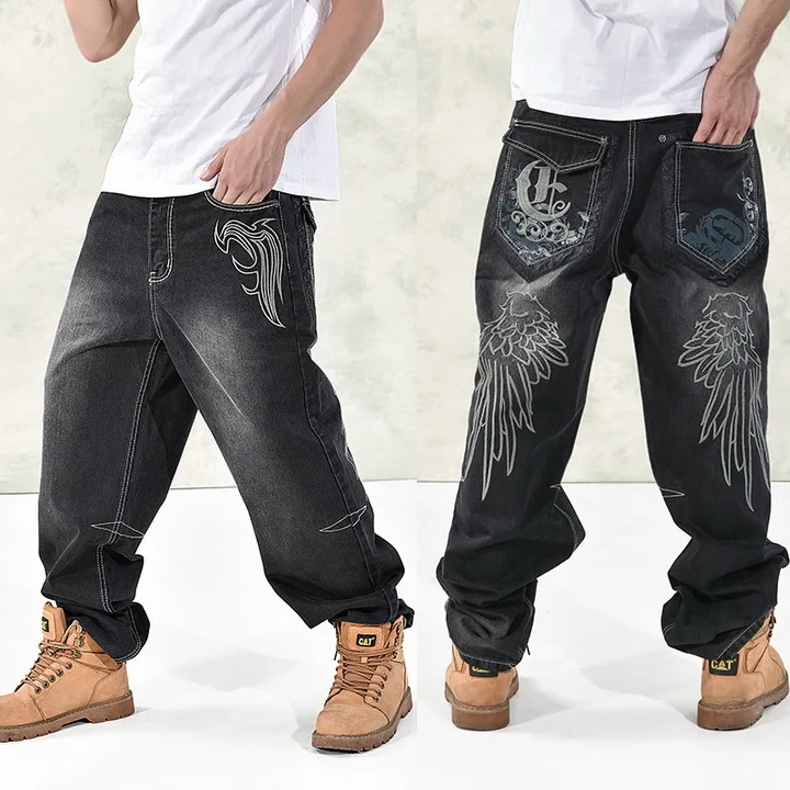 (32% Off) Купить Новинка 2019, большие размеры 30 44, 46, джинсы, модные, свободные, с большими карманами, в стиле хип хоп, для скейтборда, повседневные, мужские, син... Продажа Дешево