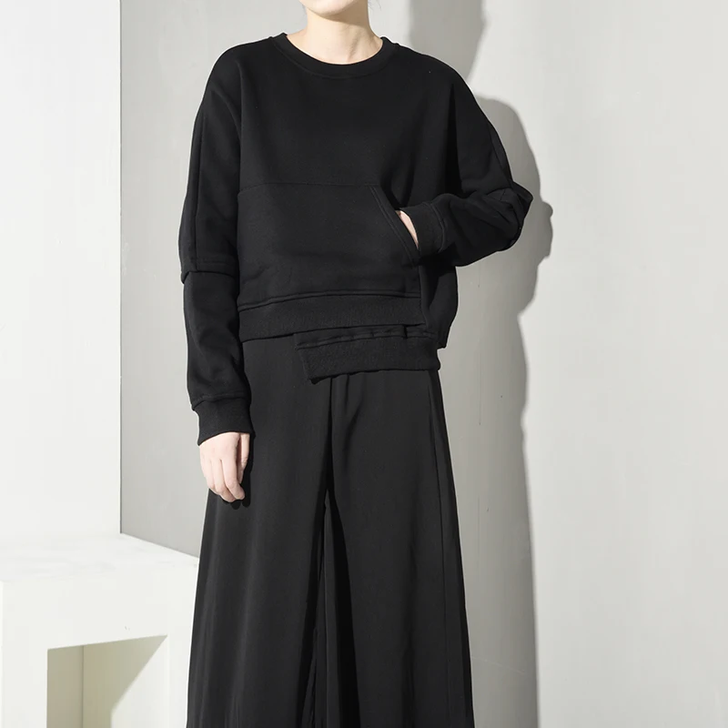 Special Offer [EAM] свободный крой с неровным подолом, большой размер, толстовка с круглым вырезом и длинным рукавом, Женская мода большого размера, Осень зи... Discount 33% Today!