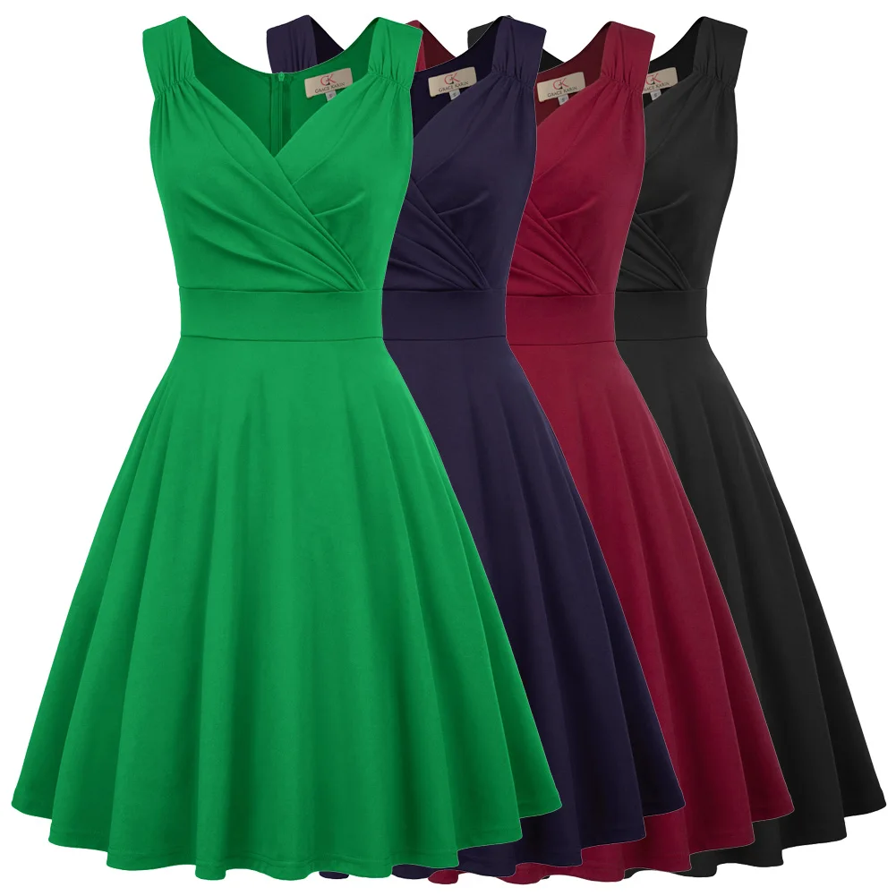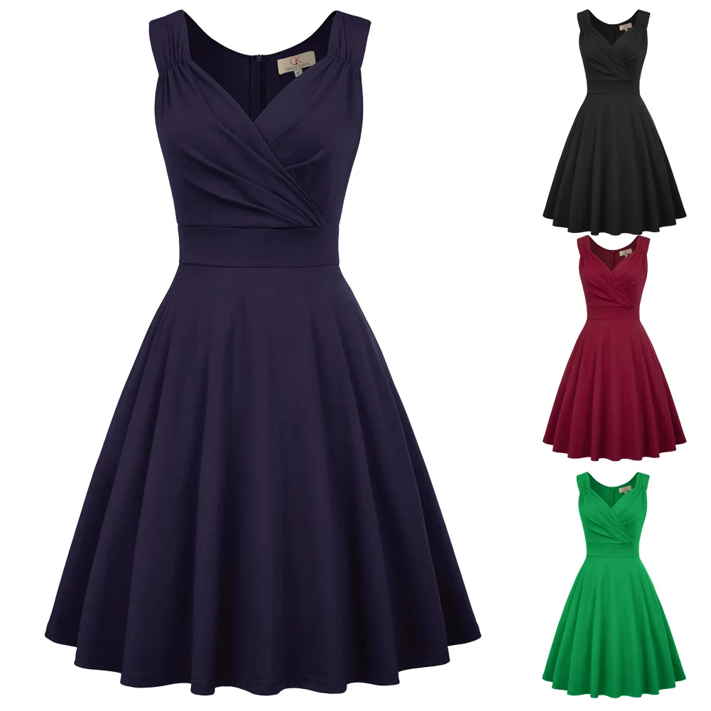 Product Name: Женское платье без рукавов с v образным вырезом, сексуальное Клубное платье длиной до колена, элегантное плиссированное платье большого раз...