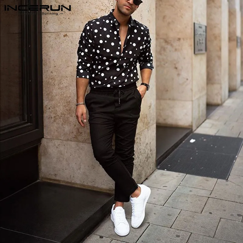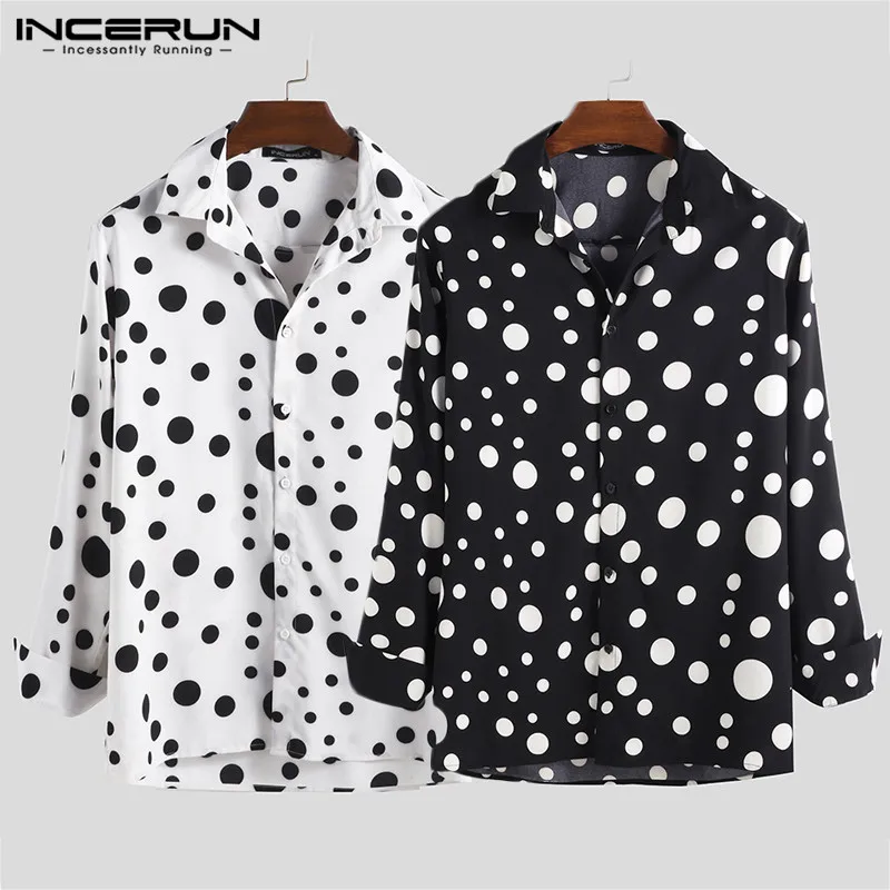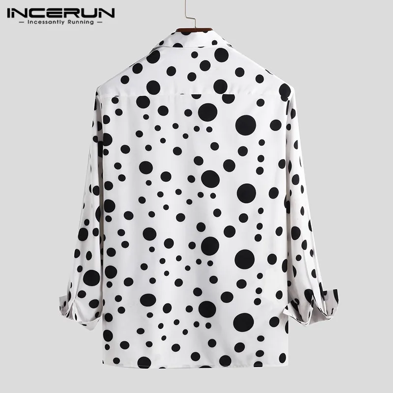 Product Name: Для мужчин Slim с узором в крупный горошек; рубашка с длинными рукавами Бизнес Фитнес с лацканами, для досуга шеи кнопки Топы INCERUN Camisas Hombre Разм...