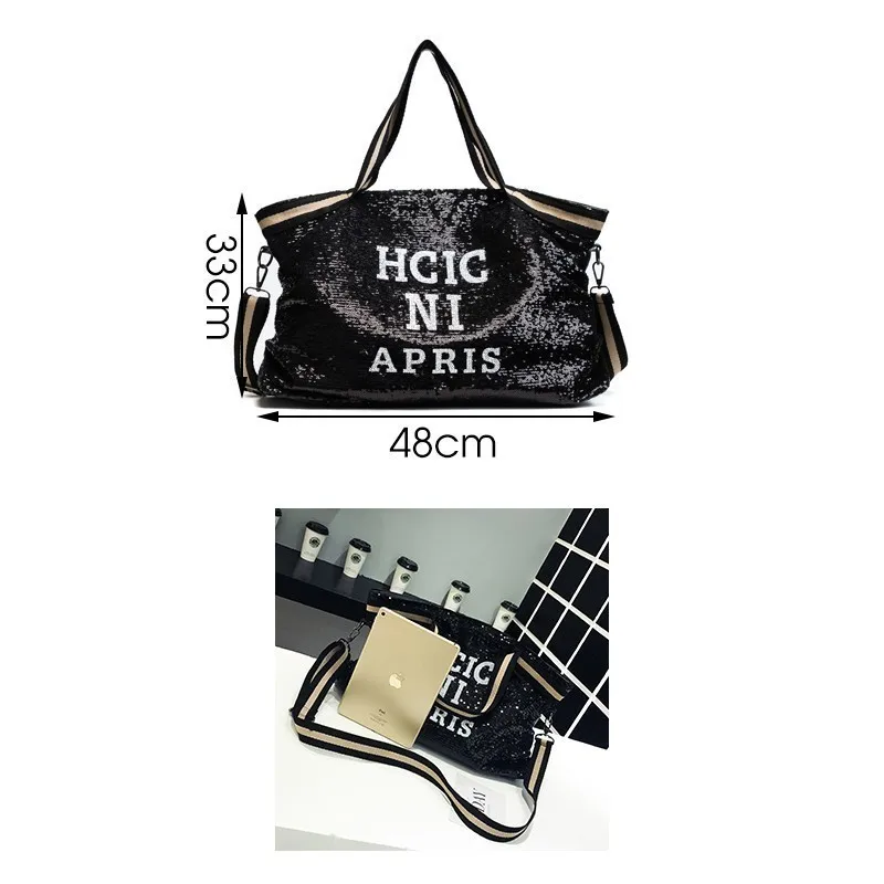 (42% Off) Купить Модные женские сумки на плечо с блестками, Большая вместительная Повседневная сумка для женщин, дорожная большая сумка тоут буквенным при... Продажа Дешево