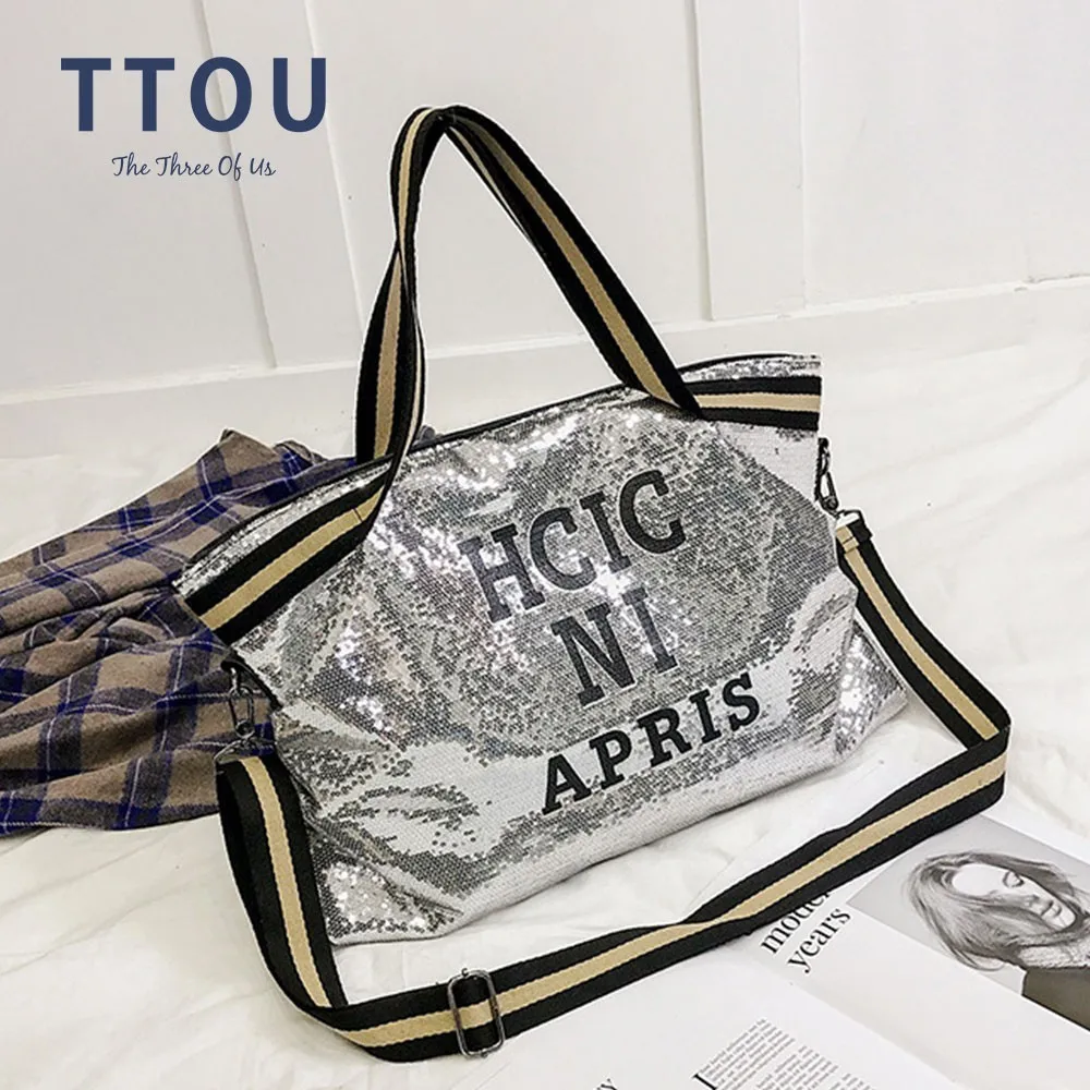 Special Offer Модные женские сумки на плечо с блестками, Большая вместительная Повседневная сумка для женщин, дорожная большая сумка тоут с буквенным при... Discount 42% Today!