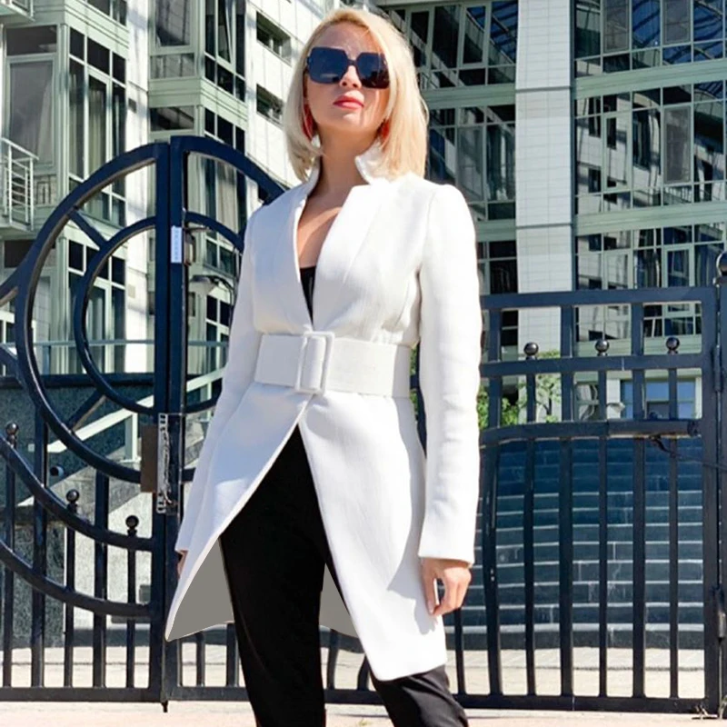 (44% Off) Купить InstaHot Шикарный белый Женский блейзер осень с поясом офисный женский клетчатый костюм верхняя одежда повседневный рабочий Блейзер П... Продажа Дешево