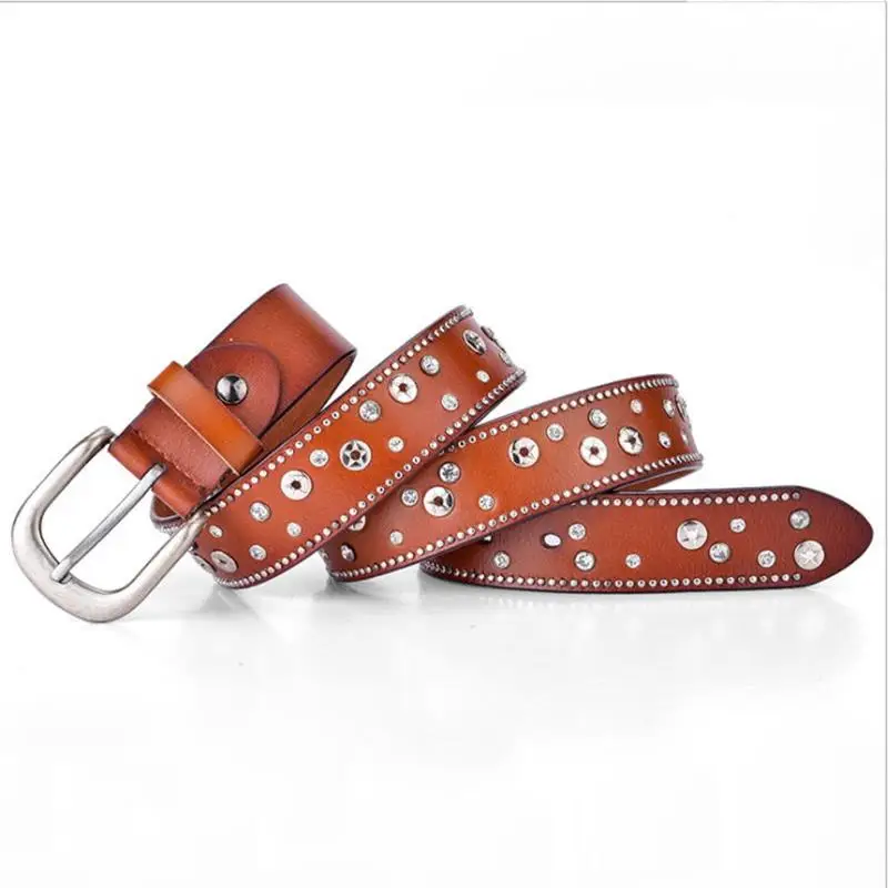 Special Offer Женский ремень из натуральной кожи SupSindy, Роскошный дизайнерский ремень в стиле панк со стразами и заклепками, высокое качество Discount 45% Today!