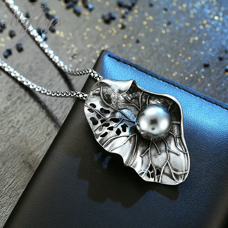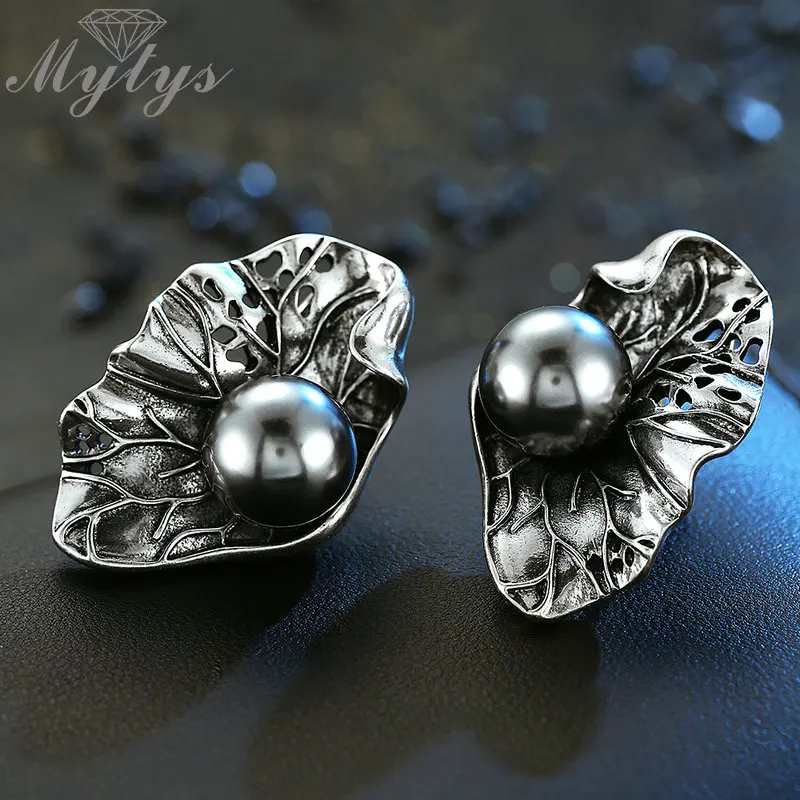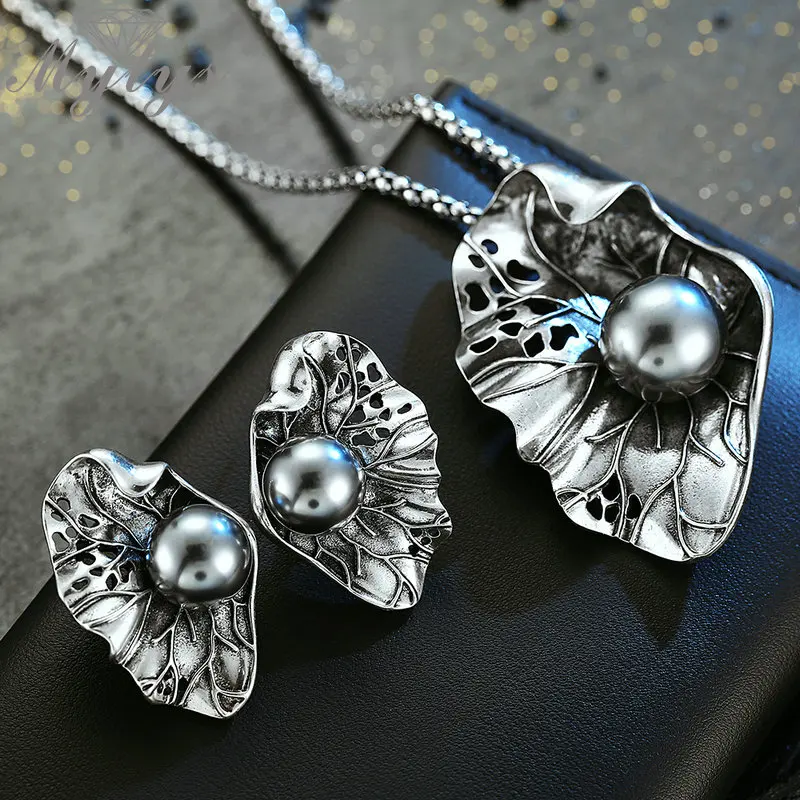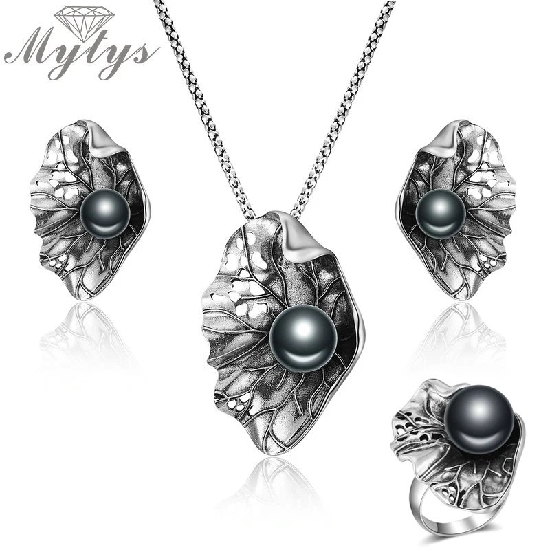Special Offer Mytys Высокое качество Античный Черный Жемчуг на Наборы украшений в форме листьев для женщин Ретро панк тибетские Серебряные наборы большие с... Discount 50% Today!