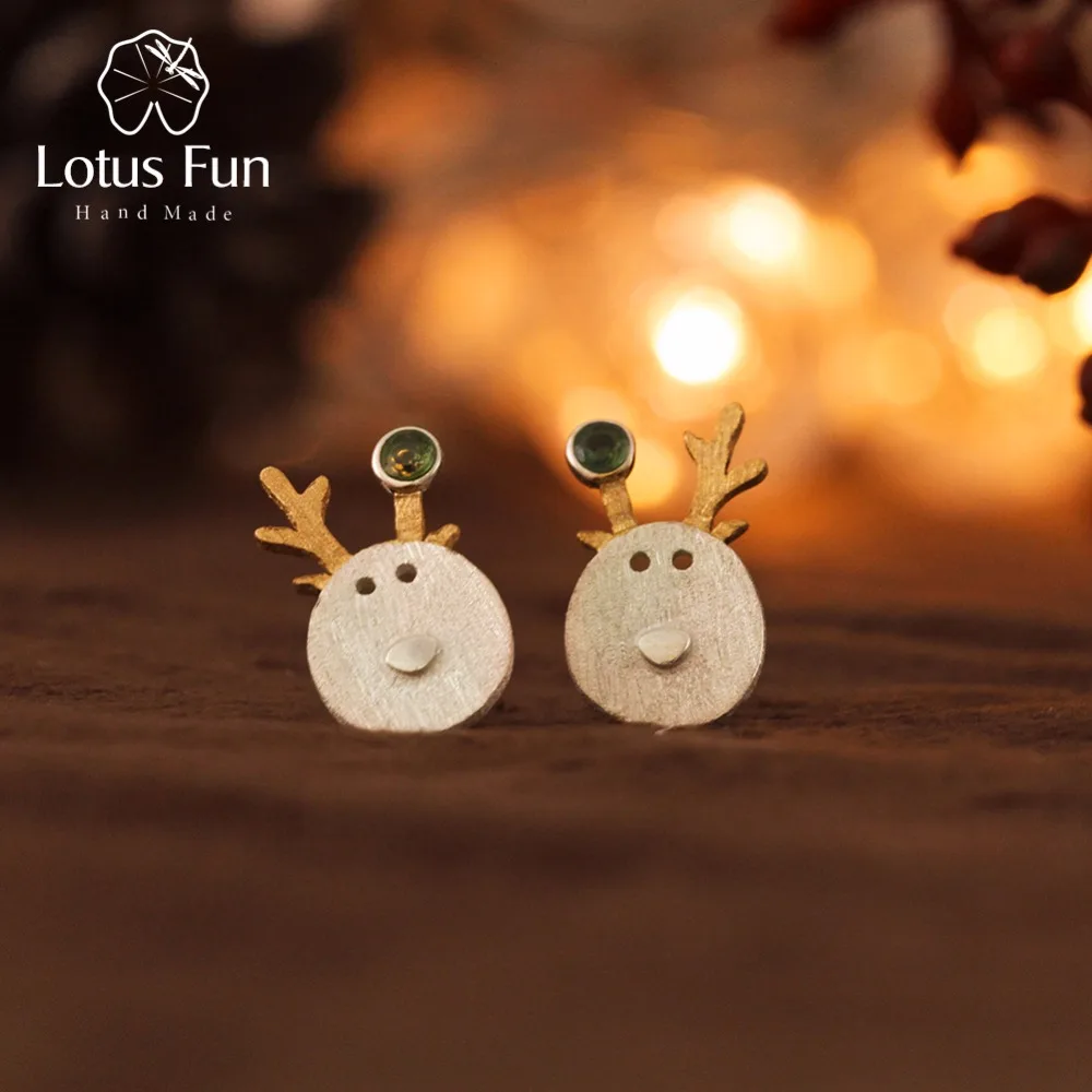 (51% Off) Купить Lotus Fun реальные стерлингового серебра 925 натуральный турмалин ручной работы Ювелирные украшения Рождество радости милый олень Серьги гвозд... Продажа Дешево
