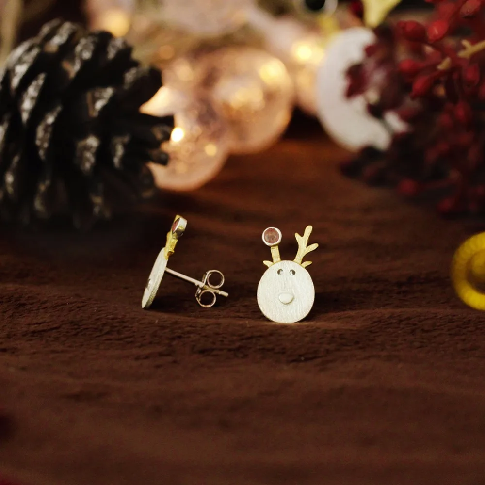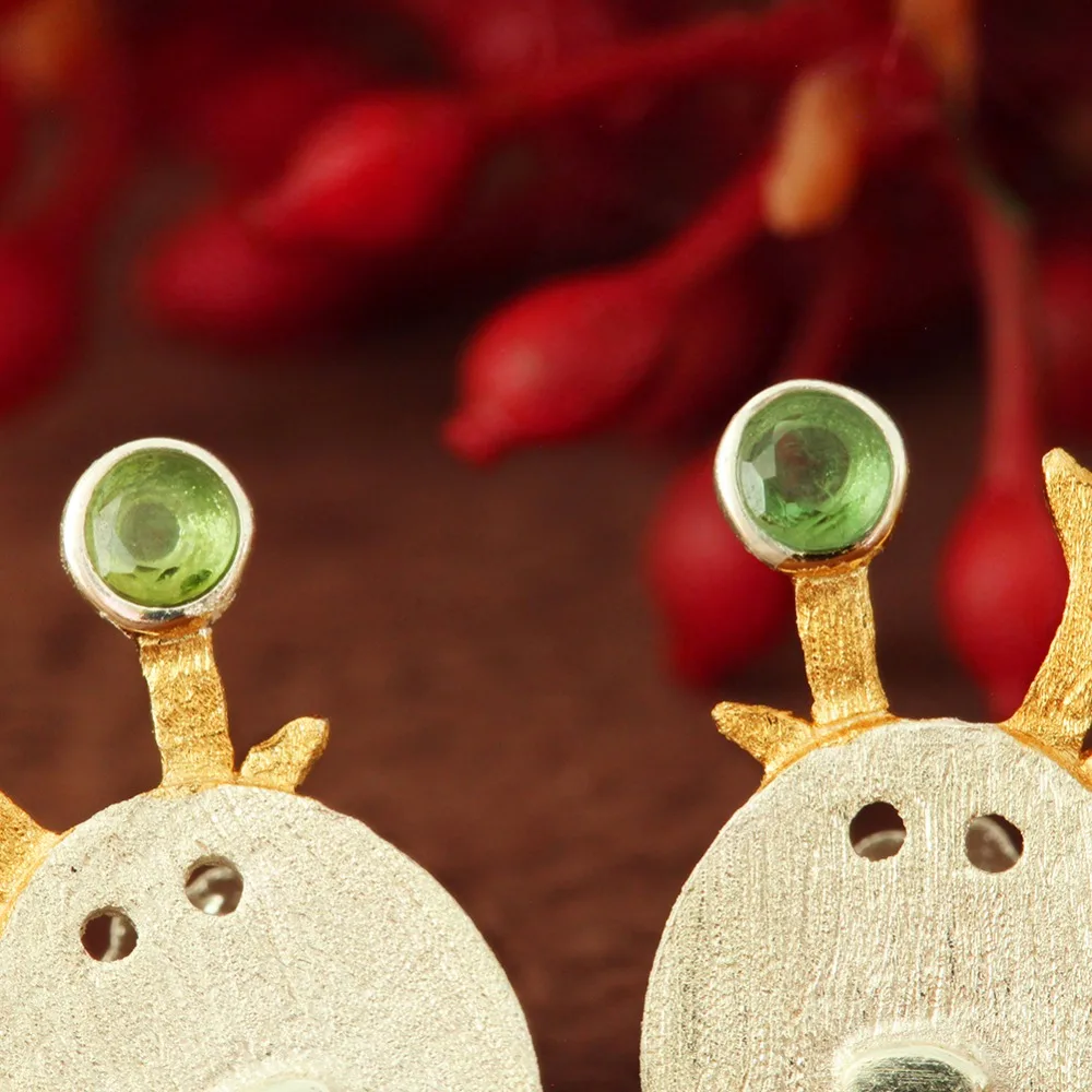 Product Name: Lotus Fun реальные стерлингового серебра 925 натуральный турмалин ручной работы Ювелирные украшения Рождество радости милый олень Серьги гвозд...