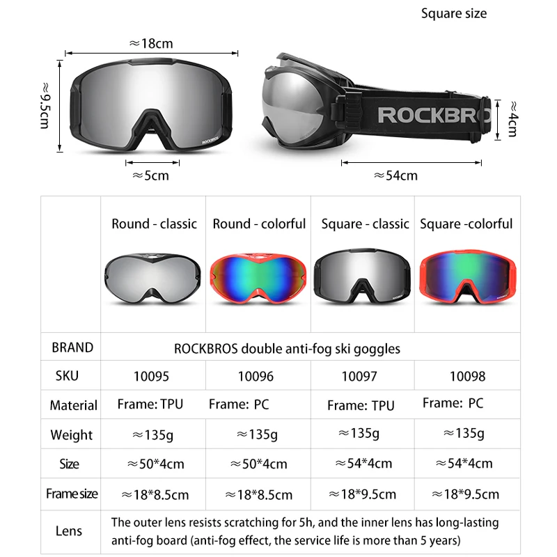 Product Name: ROCKBROS противотуманные лыжные очки двухслойные лыжные очки UV400 очки для сноуборда ПК линзы большая маска лыжные мужские и женские очки для де...