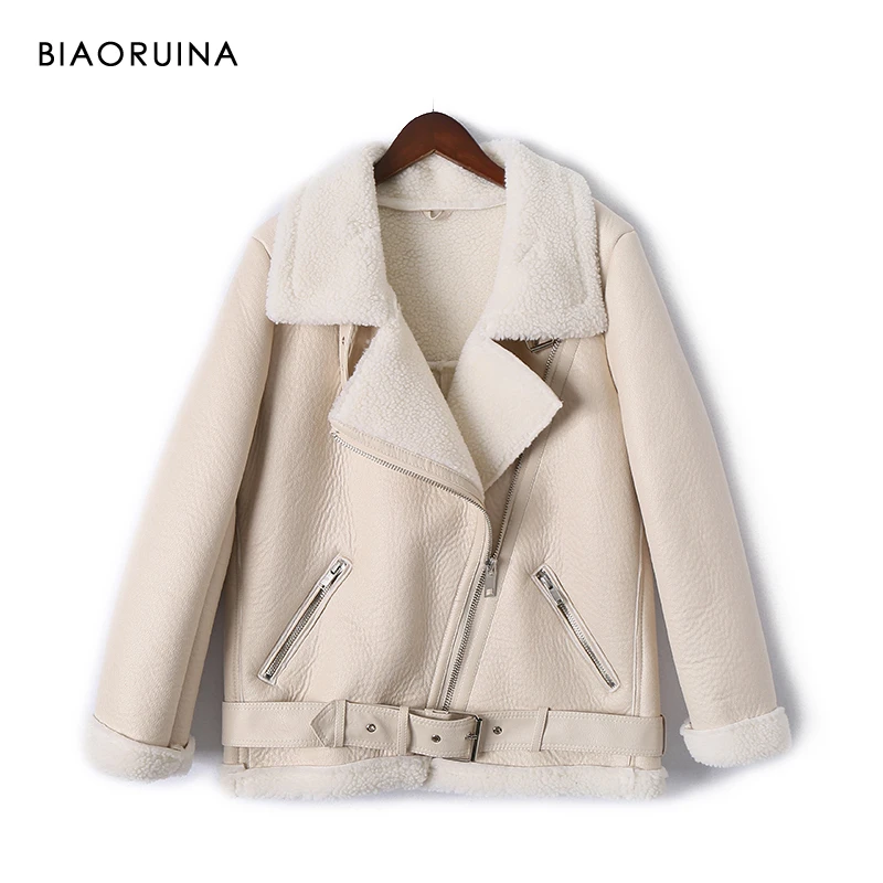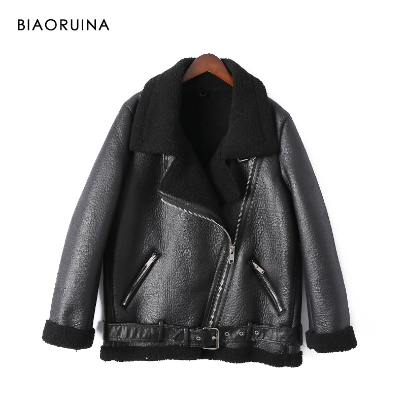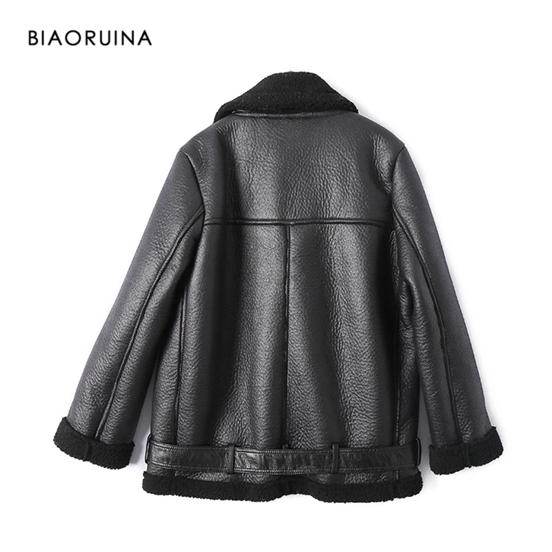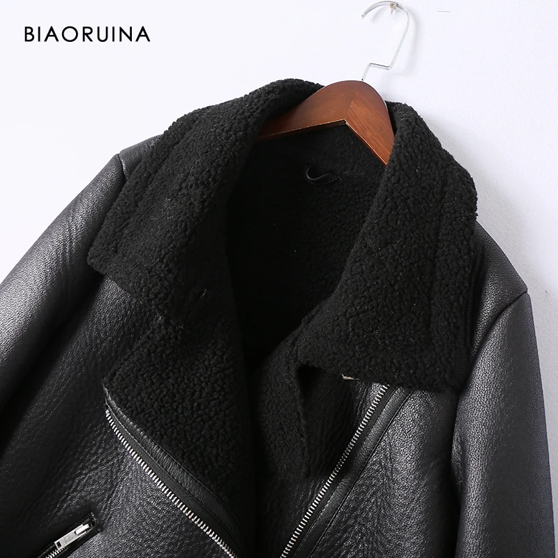 Special Offer BIAORUINA, мото и Байкерский стиль, женская Свободная искусственная кожа, пэчворк, овчина, сохраняющая тепло, толстая куртка, пальто, отложной во... Discount 68% Today!
