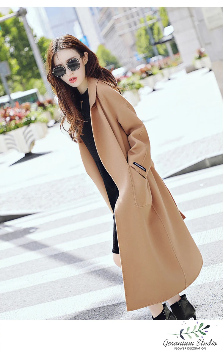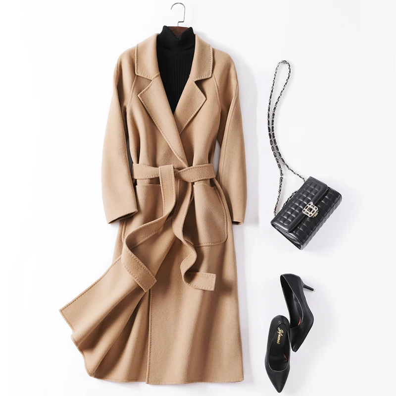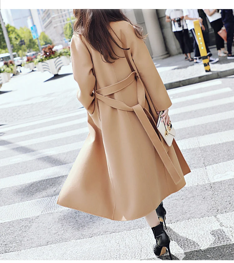 Product Name: Новинка 2019, женское кашемировое пальто с высоким воротником, женская верхняя одежда, длинное черное шерстяное пальто с карманом