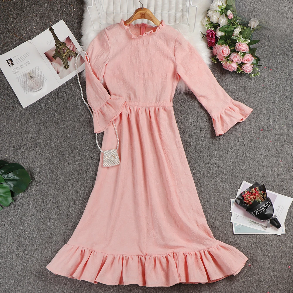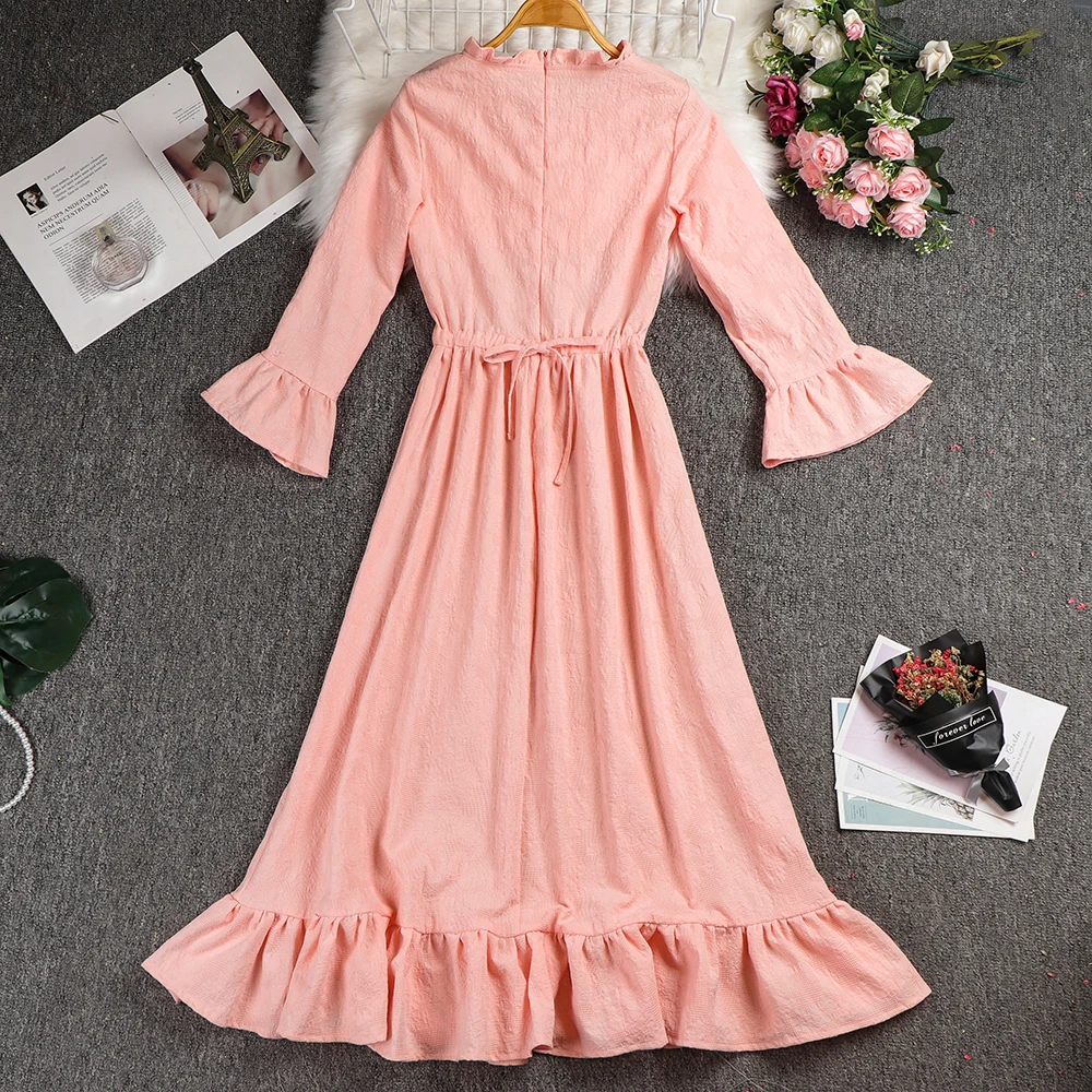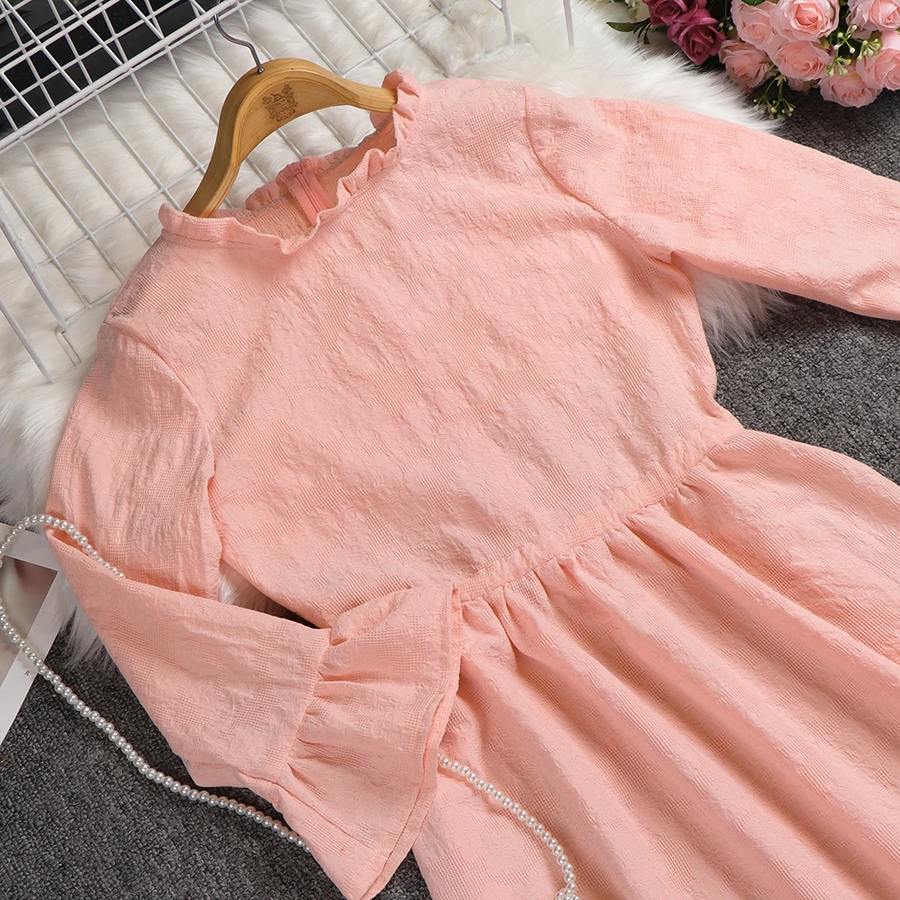 Product Name: 2019 новые леггинсы розового цвета из хлопка с круглым вырезом с длинным рукавом Свободные Большой Размеры платье Для женщин модное элегантн...