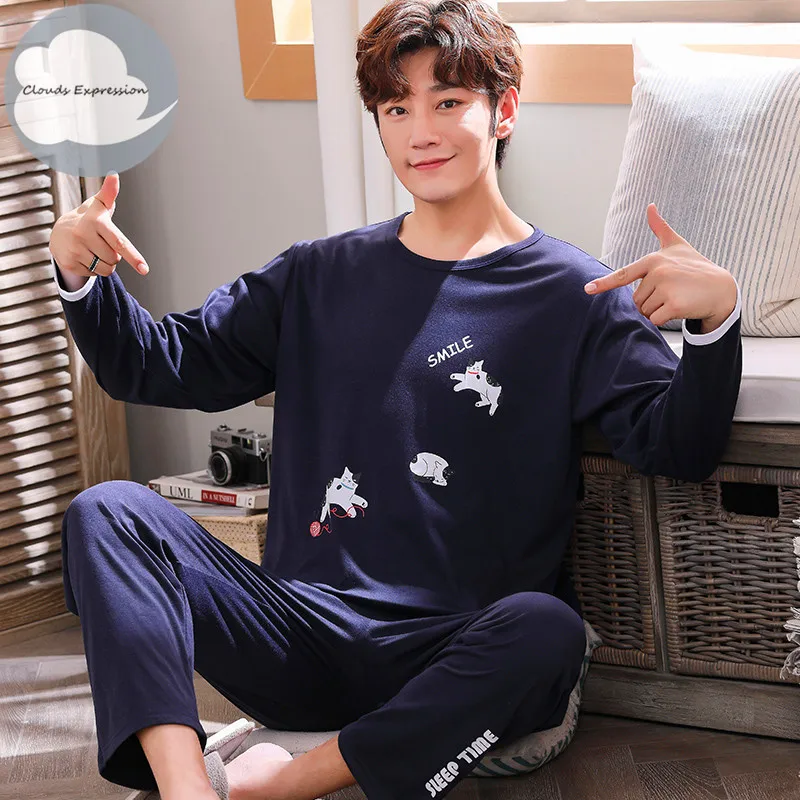 (16% Off) Купить Осенне зимние мужские хлопковые пижамы с буквенным принтом, полосатые пижамы, Мультяшные пижамные комплекты, повседневные для сна и ... Цена Дешево
