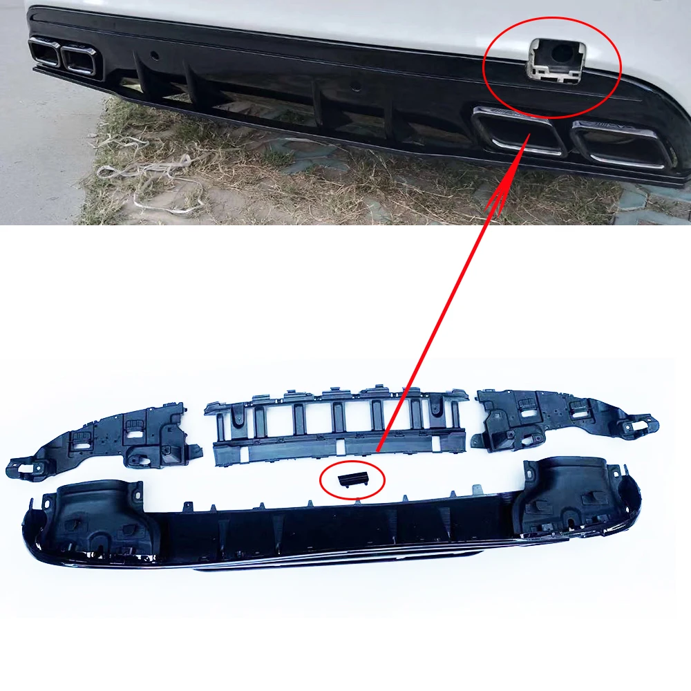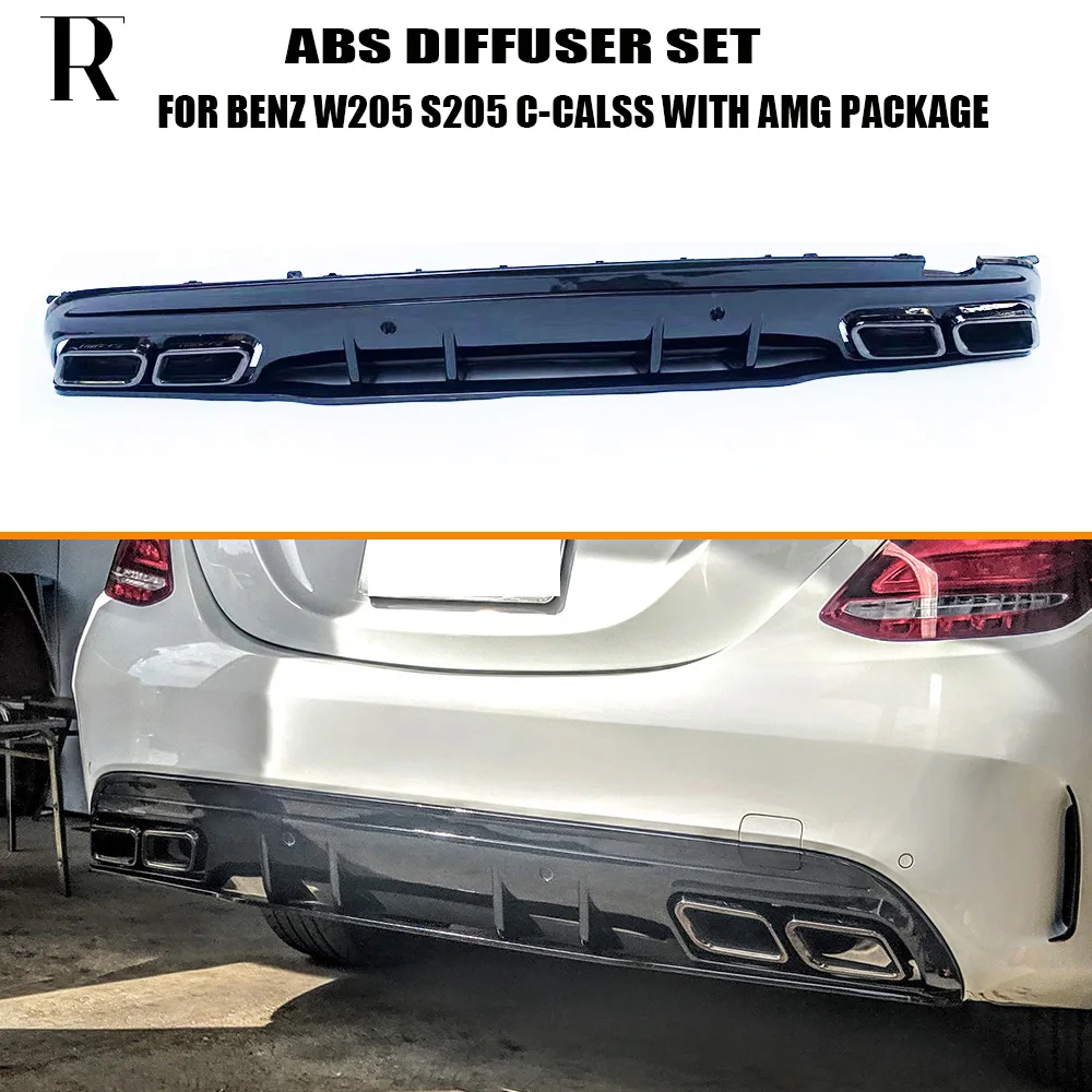 Product Name: C63s стиль 4 выхода PP задний диффузор с выхлопными наконечниками для Benz W205 S205 4 двери C180 C200 C300 C43 C63 с AMG упаковкой 15 22