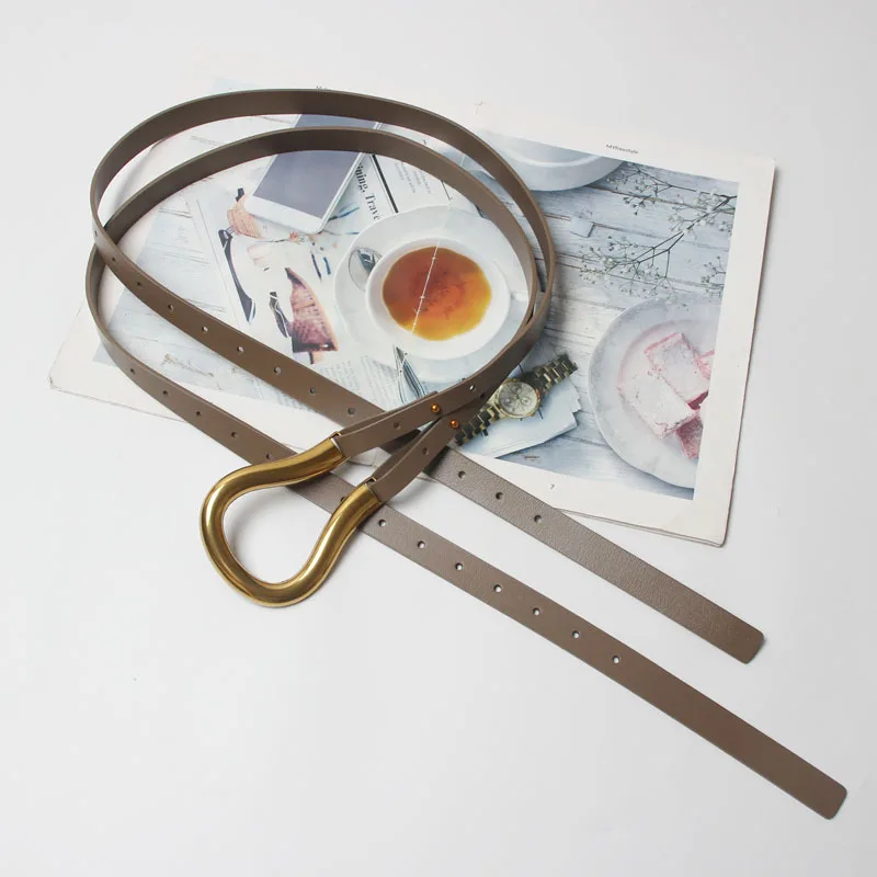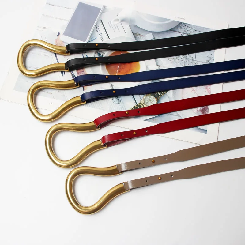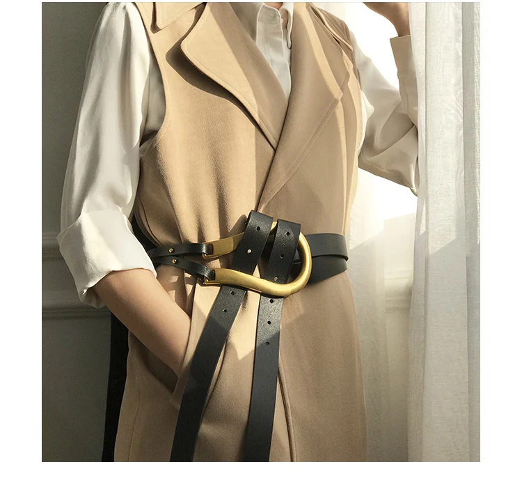 Product Name: 100% натуральная кожа двойной ремень Роскошный металлический пояс с u образной пряжкой для женщин и девушек Ретро винтажный большой ремень дл...