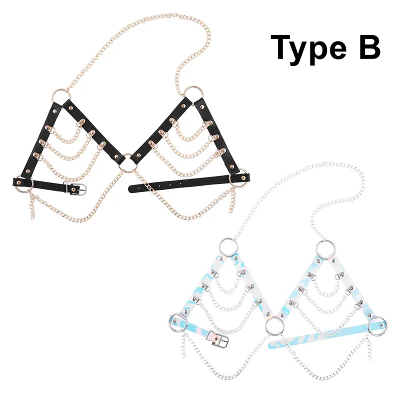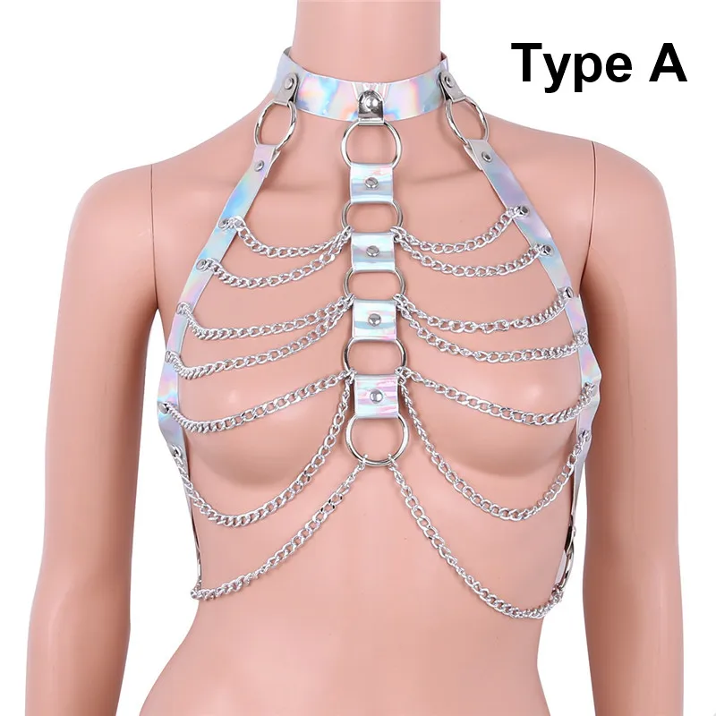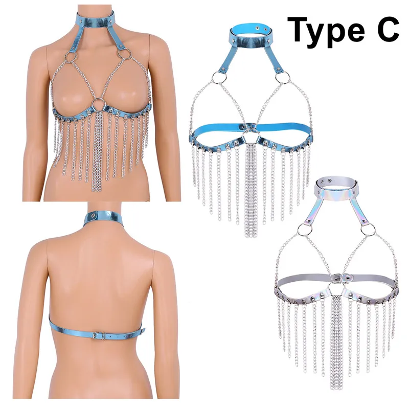 Product Name: Женский бюстгальтер с лямкой на шее TiaoBug, праздничная цепочка, пояс для связывания, фестивальный Рейв, Клубная одежда, голографический пасте...