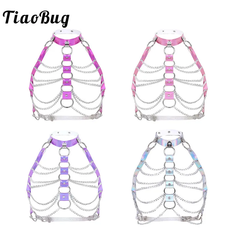 Special Offer Женский бюстгальтер с лямкой на шее TiaoBug, праздничная цепочка, пояс для связывания, фестивальный Рейв, Клубная одежда, голографический пасте... Discount 20% Today!