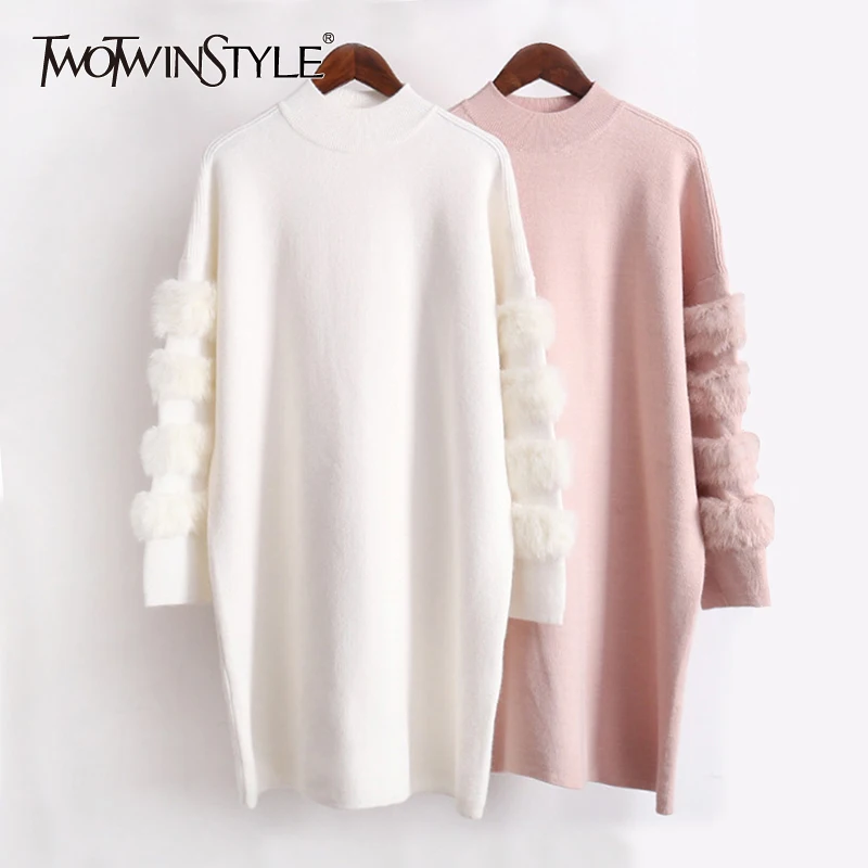 Special Offer TWOTWINSTYLE Зимний вязаный пуловер женский свитер для женщин Топ с длинным рукавом свободный большой размер толстый теплый свитер джемпер одежд... Discount 20% Today!