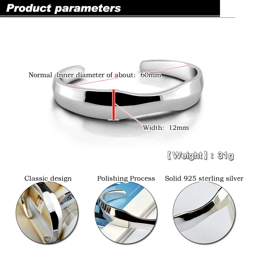 Product Name: Новинка, высокое качество, Твердое Серебро 925 пробы, сверкающий модный браслет для женщин, ювелирные изделия, лучший подарок, простой стиль